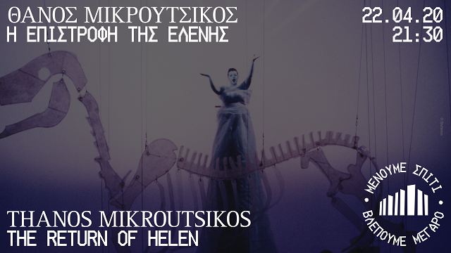Η μονόπρακτη όπερα “Η επιστροφή της Ελένης” του Θάνου Μικρούτσικου, σε κείμενα του Χρήστου Λαμπράκη, και σκηνοθεσία του Δημήτρη Παπαϊωάννου, η οποία έκανε πρεμιέρα τον Ιανουάριο του 1999, θα προβληθεί μέσα από το site του Μεγάρου Μουσικής την Τετάρτη 22 Απριλίου.