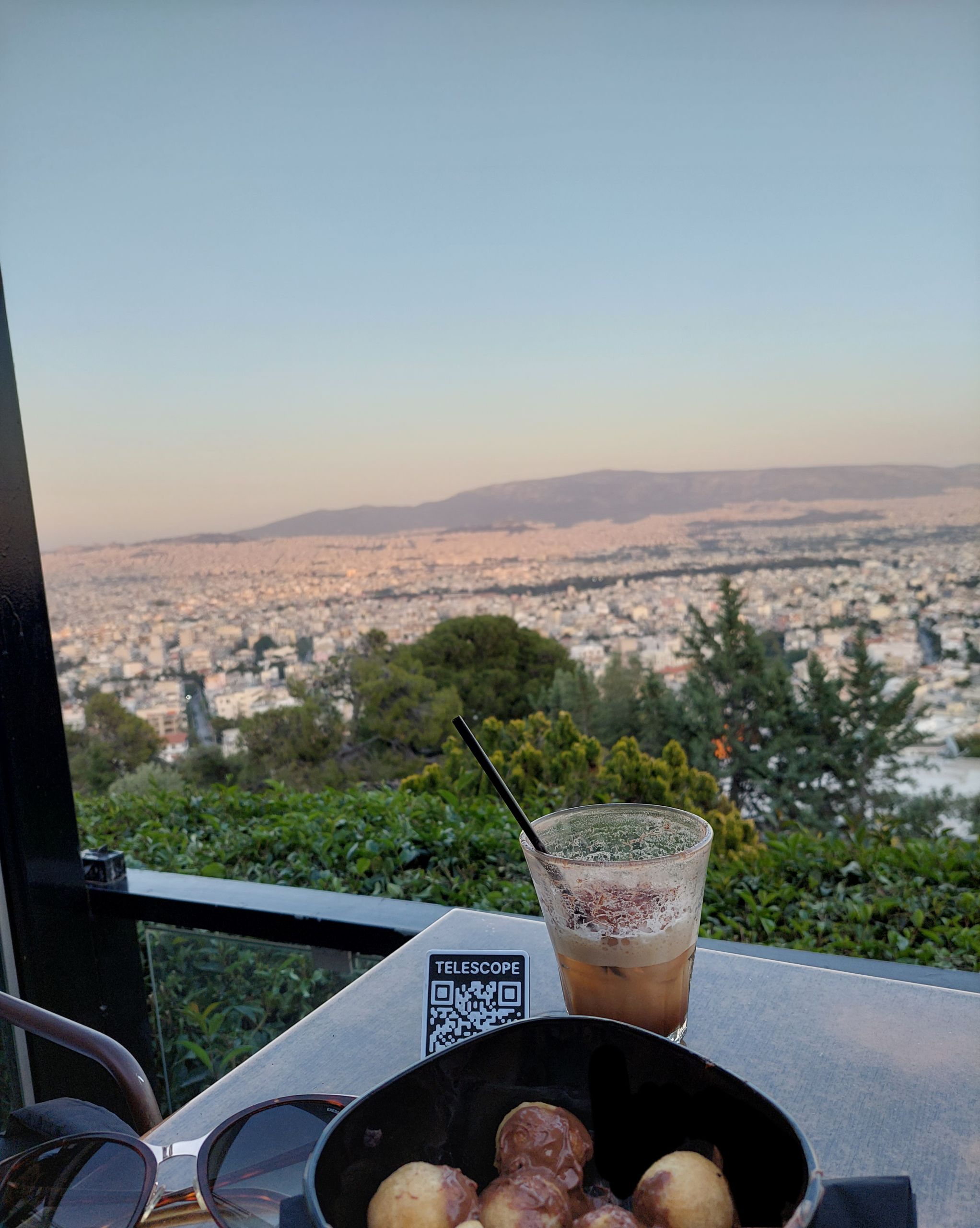 Τώρα που ο καιρός αρχίζει να μας δείχνει το καλό του πρόσωπο, το λες και επιτακτική ανάγκη να «ξεχυθούμε» στα μαγαζιά που μας προσφέρουν στο πιάτο την ομορφιά της Αθήνας, από ψηλά. Ένα από αυτά είναι και το Telescope, το οποίο βρίσκεται σε ένα από τα ψηλότερα και ομορφότερα σημεία του λόφου του Προφήτη Ηλία στο Χαϊδάρι. Το να φτάσει κανείς εκεί είναι άλλη ιστορία βέβαια, καθώς θέλει θέληση αν είστε με τα πόδια και υπομονή αν ανεβαίνετε με ένα σχετικά μετρίων κυβικών αμάξι, αλλά μόλις φτάσετε στο μαγαζί και ρίξετε μια ματιά στη θέα, ο κόπος της διαδρομής θα έχει ήδη ξεχαστεί. Highlight της επίσκεψής μας ήταν το λαχταριστό ριζότο με μανιτάρια και οι αφράτοι λουκουμάδες, τα οποία φυσικά και προτείνω ανεπιφύλακτα, η όμορφη διακόσμηση του μαγαζιού και φυσικά τα ρομαντικά σιντριβάνια στην είσοδο του Telescope, τα οποία το βράδυ ήταν τόσο όμορφα φωτισμένα που σου έδιναν την εντύπωση πως βρίσκεσαι για διακοπές σε ένα εξωτικό νησί.