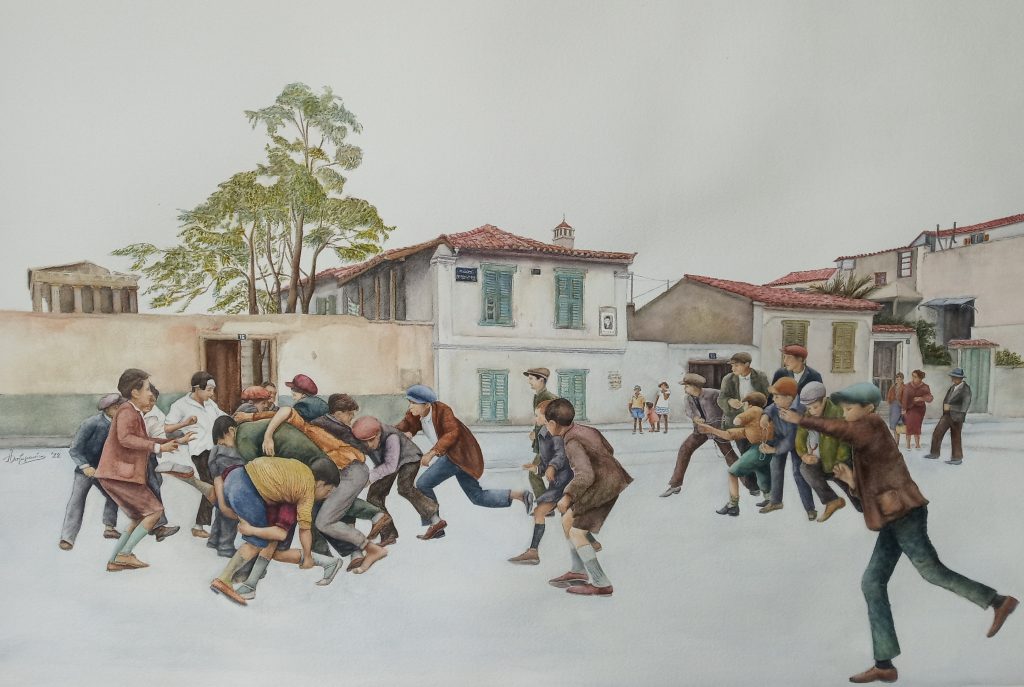 Η έκθεση, με έργα της εικαστικού Αρτεμης Χατζηγιαννάκη, σε επιμέλεια του δημοσιογράφου και συγγραφέα Νίκου Βατόπουλου, αναδεικνύει την ανθρωπογεωγραφία της παλαιάς χαμένης συνοικίας των Αθηνών, η οποία βρισκόταν στον χώρο που καταλαμβάνει σήμερα ο αρχαιολογικός χώρος της Αρχαίας Αγοράς. Ολόκληρη η συνοικία Βρυσάκι, απαλλοτριώθηκε και κατεδαφίσθηκε για να αποκαλυφθεί η Αρχαία Αγορά από τη ανασκαφή που διεξήγαγε η Αμερικανική Σχολή Κλασσικών Σπουδών.