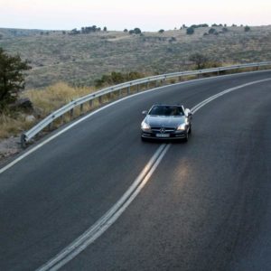 Όσο και να την κοιτάς, η SLK στο δρόμο αποκαλύπτει τον σπορ χαρακτήρα της, ανταποκρινόμενη πλήρως στον σκοπό της δημιουργίας της. Το εξαιρετικό πλαίσιο, σε συνδυασμό με το ακριβές πλέον σύστημα διεύθυνσης, το σωστό ζύγισμα και τις σφιχτές αναρτήσεις, σε κερδίζει με την αμεσότητα των αντιδράσεων του ακόμα και στους ιδιαίτερα απαιτητικούς ελληνικούς δρόμους. Σε φιδίσιες διαδρομές θαρρείς και αγριεύει, με το κιβώτιο στη θέση sport να πραγματοποιεί αστραπιαίες αλλαγές μέσω των paddles και να βοηθά τον οδηγό να πιέσει όσο περισσότερο γίνεται στο όριο. Η μούρη παραμένει σε τροχιά επίθεσης καθ΄όλη τη διάρκεια και εσύ δεν έχεις παρά να σημαδέψεις την επόμενη στροφή. Αυτό θα στρίψει όπως το έχεις υπολογίσει, εκτός αν το παρακάνεις. Εκεί όμως θα λάβει τα μέτρα του το ESP, επαναφέροντας σε και πάλι σε πιο ασφαλείς ρυθμούς. Οι 184 ίπποι σε συνδυασμό με το βαρύ αμάξωμα και το αυτόματο κιβώτιο δεν αφήνουν βέβαια και πολλές ελπίδες για «παιχνίδια». Αν θέλετε λοιπόν μπαντιλίκια και καμένα λάστιχα σε κάθε εκκίνηση, απλά ξεχάστε το.