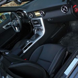 Στα ενδότερα τώρα, η νέα SLK έχει εξοπλιστεί με μια πλειάδα τεχνολογιών, με κορυφαία όλων την οροφή Magic Sky Control. Η οροφή αυτή βρίσκεται στον προαιρετικό εξοπλισμό, είναι γυάλινη αντί μεταλλική και επιτρέπει με το πάτημα ενός κουμπιού το φως του ήλιου να περνά στην καμπίνα, ανάλογα με τις διαθέσεις του οδηγού. Ιδιαίτερα αποτελεσματικό είναι το σύστημα AIRSCRAF που στέλνει αέρα στον αυχένα οδηγού και συνοδηγού, όπως και το Attention Assist, που ανιχνεύει πιθανή τάση του οδηγού για υπνηλία, ειδοποιώντας το με ηχητικά σήματα και με δονήσεις στο κάθισμα. Το τελευταίο βρίσκεται στον βασικό εξοπλισμό, μαζί με Adaptive Braking που κρατά το αυτοκίνητο ακινητοποιημένο σε ανηφόρα, χωρίς ο οδηγός να πατά το φρένο. Άλλα συστήματα που διαθέτει η SLK, είναι το Distronic Plus, το Pre-Safe και το Dynamic Hadling, το οποίο περιλαμβάνει ένα πακέτο συστημάτων, όπως το σύστημα διεύθυνσης Direct Steering, τις ηλεκτρονικά ελεγχόμενες αναρτήσεις και το Torque Vectoring (λειτουργεί σαν ηλεκτρονικό διαφορικό), επεμβαίνοντας στην συμπεριφορά του αυτοκινήτου στο δρόμο.