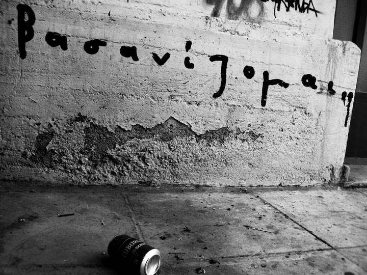Το είδα πρώτη φορά πριν από 2 χρόνια σε ένα μισογκρεμισμένο τοίχο στα Εξάρχεια. Αν μπορούσε θα το είχε γράψει μόνος του και ο τοίχος τόσο ταλαιπωρημένος ήταν. «βασανίζομαι» με μικρά πλαγιαστά γράμματα, με τόνο, να κοιτάζει πιο δυνατά από όσο το κοίταζα εγώ, ήταν εκεί γραμμένο και περιμένει κάποιος να το διαβάσει. Κάποιος βασανίζεται και δεν ξέρει που να το πει, κάποιος βασανίζεται και θέλει να το μοιραστεί με όλους. Ένα σύνθημα μοναξιάς με ένα ψίθυρο ολολυγμού σεργιανάει πλέον στους ατομοκεντρικούς αθηναϊκούς δρόμους και η τραγική ειρωνεία είναι πως δεν ξέρει κανένας αν τελικά δεν βασανίζεται πια. Να σημειωθεί ότι έχουν δημιουργηθεί άπειρες κοινότητες με τίτλο «βασανίζομαι» στο διαδίκτυο, ενώ εξίσου αναρίθμητα είναι πια και τα βασανίζομαι στην πόλη μας, με πρώτο και μεγαλύτερο, εκείνο το πελώριο σε μια πολυκατοικία της Νέας Σμύρνης.