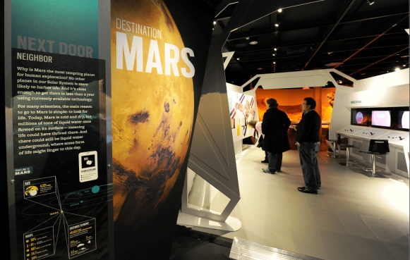 H έκθεση ξεκινά με την Ιστορία των αποστολών στο διάστημα: το Sputnik 1, ο πρώτος τεχνητός δορυφόρος, η διαστημική κάψουλα Vostok 1 που έθεσε πρώτη φορά άνθρωπο, το Γιούρι Γκαγκάριν, σε τροχιά γύρω από τη Γη, το διαστημικό τηλεσκόπιο Hubble και το Μars Rover που εξερεύνησε τον Άρη. Στα εκθέματα αυτής της ενότητας περιλαμβάνεται μεταξύ άλλων και ένα ζευγάρι γάντια Σοβιετικού κοσμοναύτη.