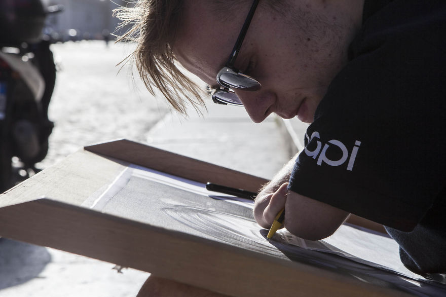 Το γεγονός της αναπηρίας του, δεν τον εμπόδισε να εκπληρώσει το όνειρό του, σχεδιάζοντας εκπληκτικά πορτραίτα που άνετα σε μπερδεύουν με φωτογραφίες.