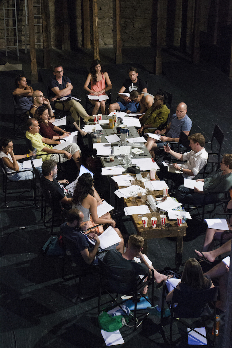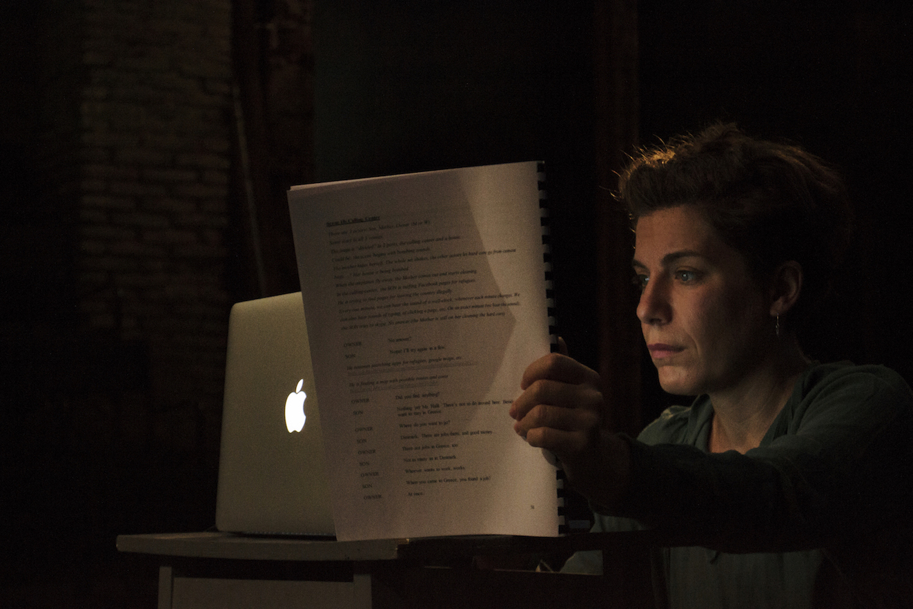 Κάτω από τα φώτα που φέγγουν θαμπά στη σκηνή της «Σφενδόνης», οι κάτοικοι ενός πλούσιου ελβετικού χωριού συγκαλούν έκτακτη συνέλευση: Θα δεχθούν να φιλοξενήσουν Σύρους πρόσφυγες στην κοινότητα τους ή δεν θα ρισκάρουν να τη νοθεύσουν με ξένο αίμα; Σ’ αυτόν τον κρίσιμο διάλογο που αναπαρίσταται θεατρικά και εκπέμπει από τρεις οθόνες στους πέτρινους τοίχους του θεάτρου συμμετέχουν, αυτό το πρωί Κυριακής, Γερμανοί, Βρετανοί και Ελληνες ηθοποιοί. «Σαν ένα μίνι συμβούλιο κρατών», θα πει κάποιος και δεν θα ‘χει άδικο.