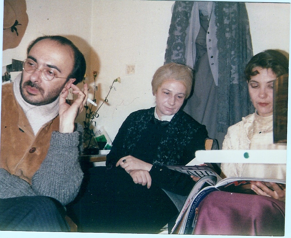 Μελίνα Βαμβακά, Σοφοκλής Πέππας, Λευτέρης Βογιατζής, Όλια Λαζαρίδου, Λυδία Κονιόρδου, Ηλίας Πετροπουλέας, Νίκος Μαστοράκης, Αλεξάνδρα Παντελάκη, Δημήτρης Δάκτυλας. Αυτή είναι η διανομή στο «Θείο Βάνια» του Τσέχωφ. Φοβερή ομάδα. Μας σκηνοθετούσε ο Βογιατζής, κι εγώ έκανα τη μάνα του. Πάλι ρόλος μητέρας δηλαδή κι ενώ ο Λευτέρης ήταν μεγαλύτερος μου. Φορούσα περούκα, ενώ εκείνος με έβαφε. Εδινε έμφαση μέχρι και στην τελευταία λεπτομέρεια· μου έβαφε ακόμη και τα χέρια για να μην φαίνεται η πραγματική μου ηλικία”. Στη δεύτερη φωτό μια στιγμή από το καμαρίνι, εγώ με το Νίκο Μαστοράκη και την Ολια Λαζαρίδου.