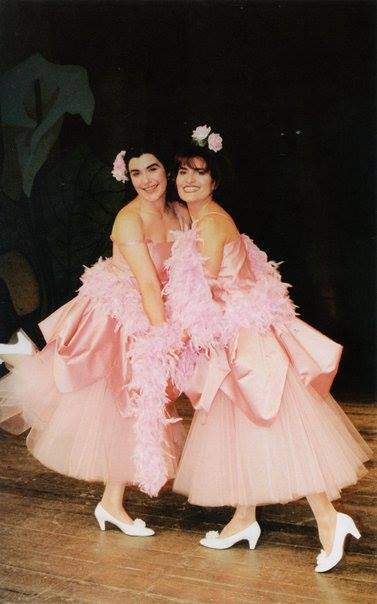 Εδώ σε ένα ροζ εναγκαλισμό με τη Λυδία Κονιόρδου από το φινάλε της παράστασης Κου-κου Τσα σε κείμενα δικά μου.