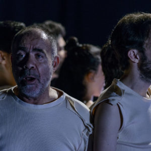 Το απογευματινό φως δεν φτάνει στην ημιυπόγεια αίθουσα προβών της οδού Δροσοπούλου. Εκεί, στο ημίφως, οκτώ ηθοποιοί βαδίζουν κυκλικά σαν υπνωτισμένοι, υπακούοντας στην ήρεμη φωνή της δασκάλας κινησιολογίας Βίκυς Παναγιωτάκη για να «διαγράψουν έναν ανοιχτό κύκλο με τα χέρια» ή να «αγγίξουν ο ένας τον άλλο τη στιγμή που θα βρεθούν κοντά του». Τα αθόρυβα βήματα που απορροφά το ελαστικό δάπεδο θα δώσουν τη θέση τους σε φωνητικές ασκήσεις, όπου τα ίδια πρόσωπα – σαν ένα σώμα πια – θα δεθούν με μεγάλη φόρα κάτω από κοινές, μα ακατανόητες συλλαβές.