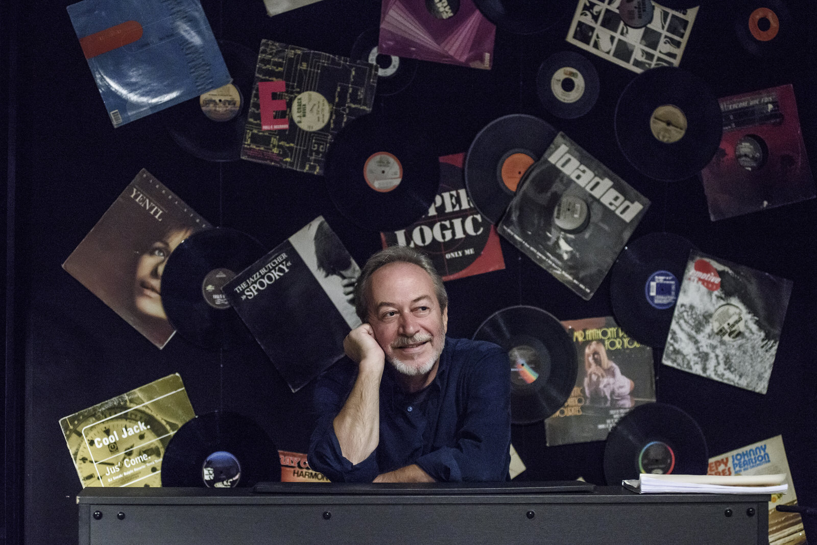 Στο καμαρίνι του «Ιλίσια» μας κοιτάζει ο Δημήτρης Χορν. Η Αλίκη Βουγιουκλάκη. Ο Πέτρος Φυσσούν. Η Ρένα Βλαχοπούλου. Και η Τζένη Καρέζη. Τα κάδρα με τις φωτογραφίες που κρέμονται στον απέναντι τοίχο, αντανακλούν στον καθρέφτη μαζί με το πρόσωπο του.