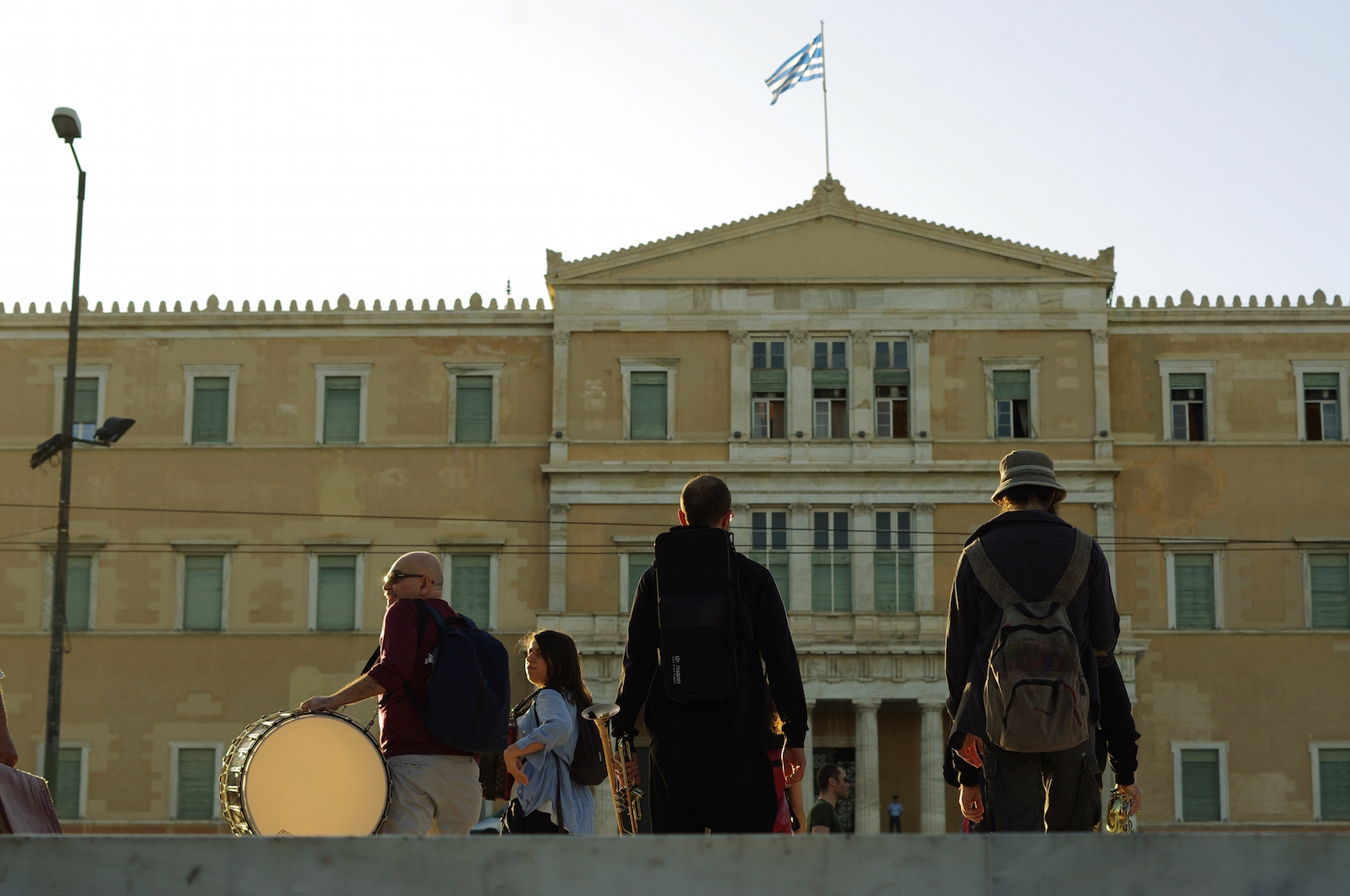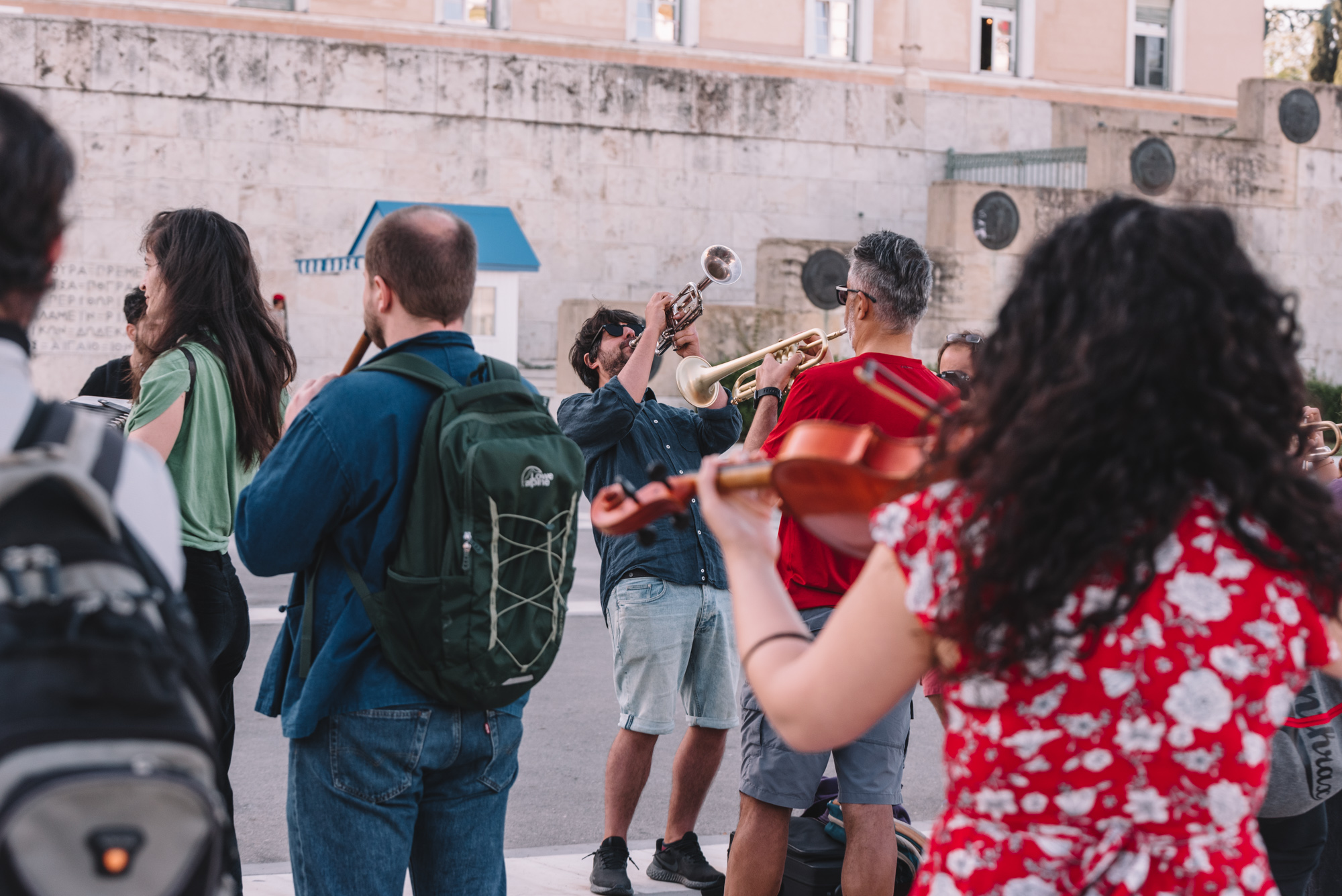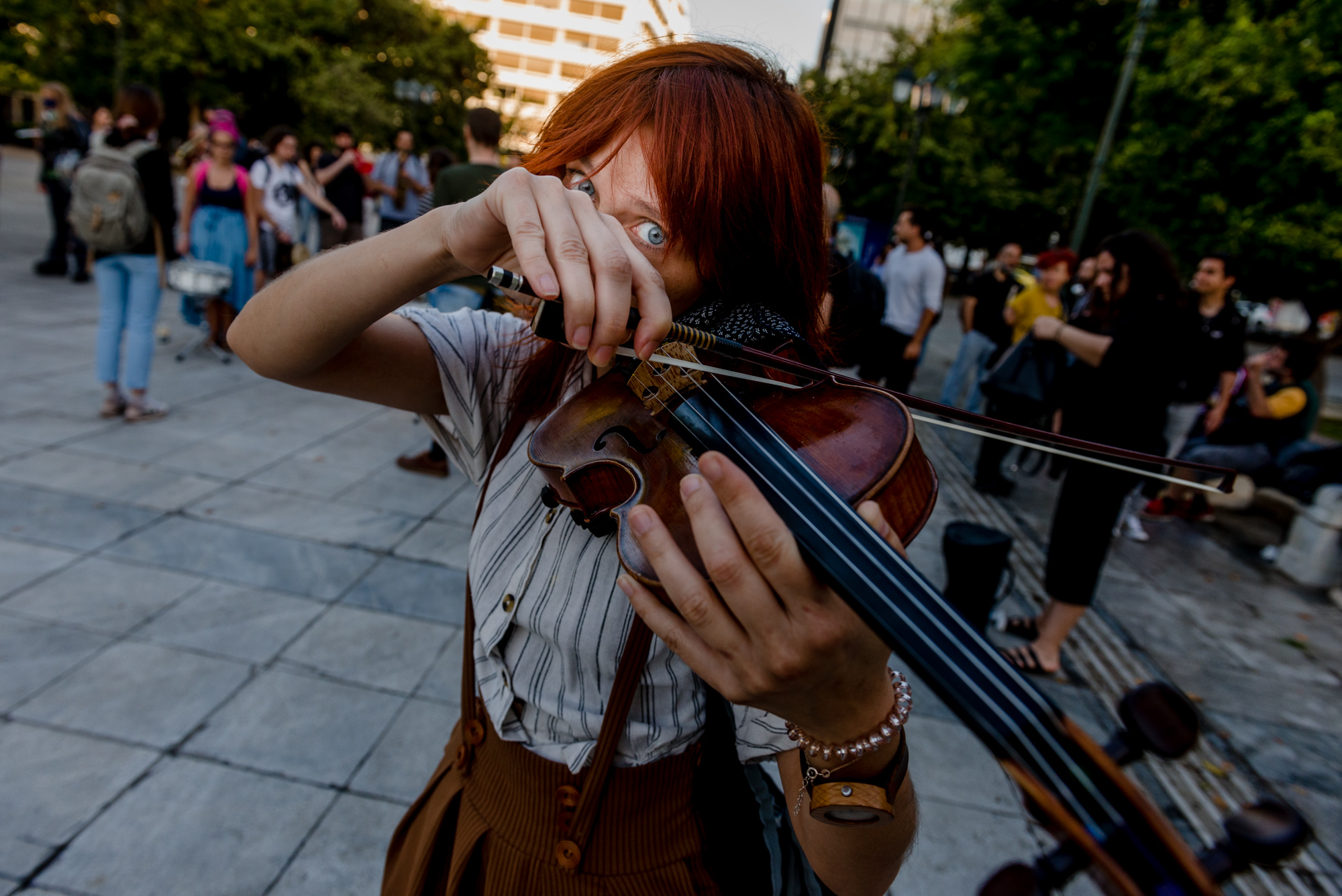 Από την πρωϊνή δράση στην πλατεία Συντάγματος, μπροστά στη Βουλή όπου οι καλλιτέχνες εξέπεμψαν μουσικό SOS/ credit: Αλέξανδρος Κορομηλάς