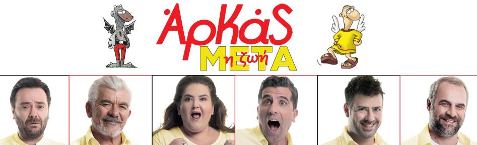 Ο Θανάσης Βισκαδουράκης, ο Γιώργος Γιαννόπουλος, η Σοφία Βογιατζάκη, ο Πέτρος Μπουσουλόπουλος, ο Χρήστος Τριπόδης και ο Δημήτρης Αγοράς που υπογράφει τόσο την θεατρική διασκευή όσο και την σκηνοθεσία, ώς σύγχρονοι ήρωες του Αρκά θα ξεπηδήσουν και θα ζωντανέψουν τις ξεκαρδιστικές ιστορίες η «Ζωή Μετά», ο «Ισοβίτης» και «Χαμηλές Πτήσεις», στην open air σκηνή του Θεάτρου Χυτήριο.