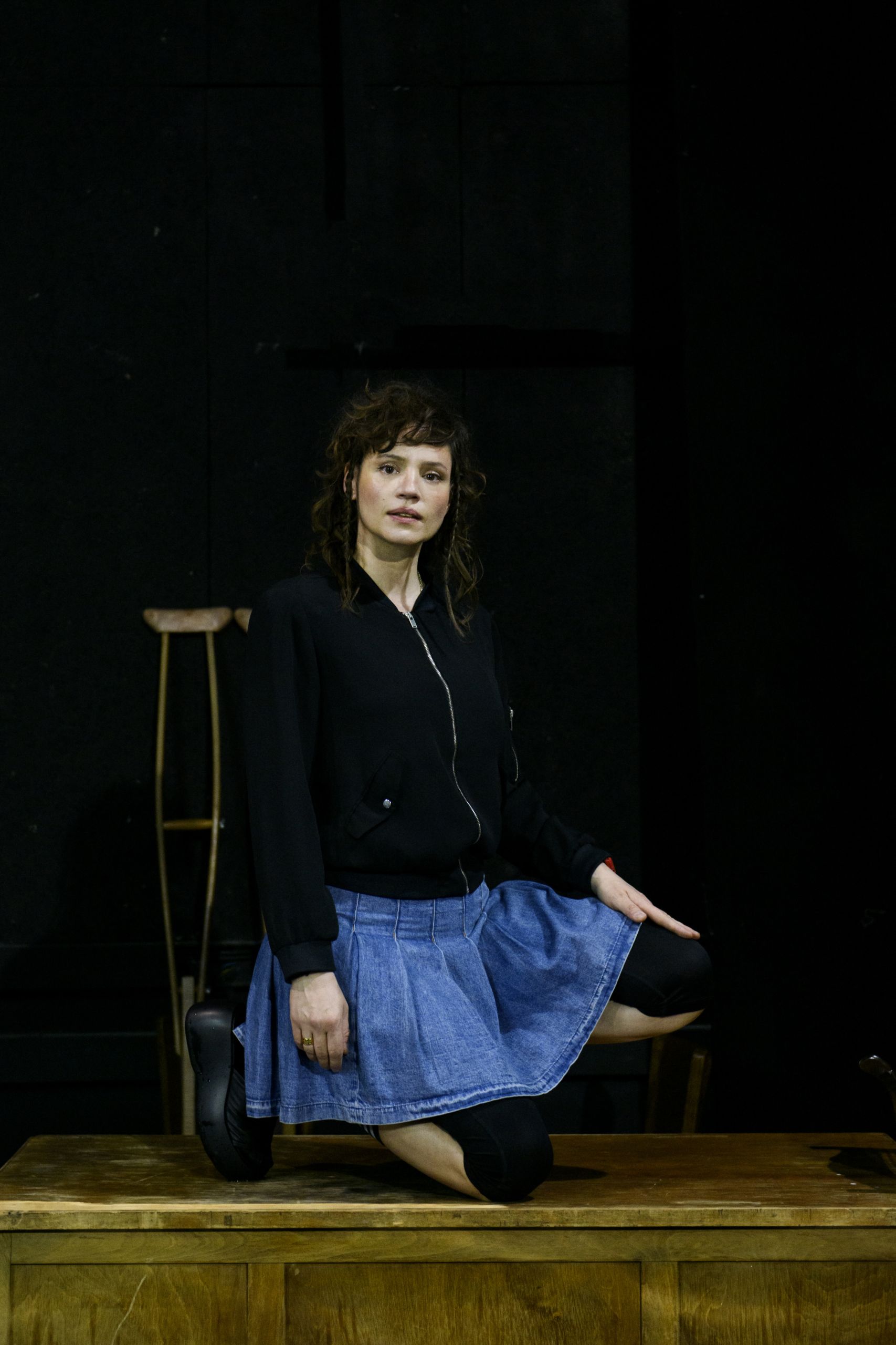 Ντυμένη, όπως συνήθως, στα μαύρα, με μια φανταστική oversize μπλούζα του μπέιζμπολ, περιμένει στο αγαπημένο καφέ της γειτονιάς της, στο Κουκάκι. Απομένουν λίγες μέρες για την αναχώρηση μαζί με τον πρωταγωνιστή και σύντροφο της, Άρη Σερβετάλη για μια καλοκαιρινή περιοδεία που η ίδια ονομάζει «φελινική». Θα φορτώσουν τα δύο σκυλιά τους, λίγα ρούχα και το σκηνικό της παράστασης «Το όνειρο του Γελοίου» και θα βγουν στους ελληνικούς δρόμους με ένα βανάκι «σαν μικρό μπουλούκι», όπως λέει.