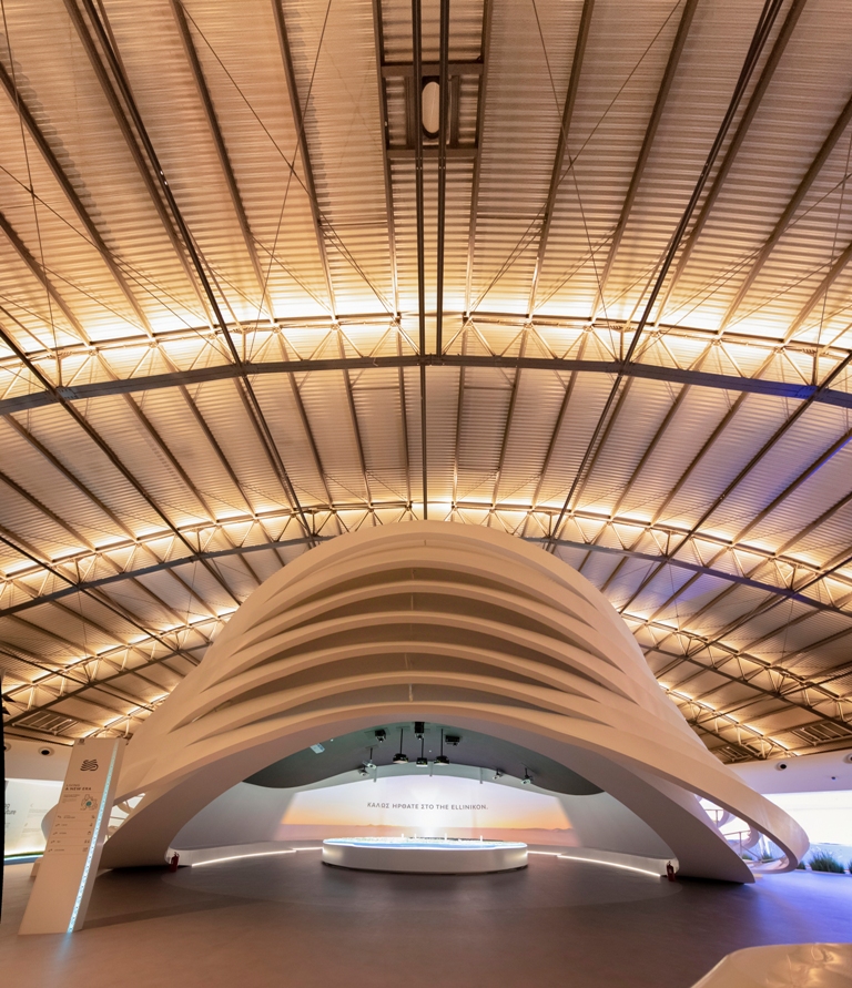 Κάτω από τον επιβλητικό θόλο που αποτυπώνει τη ροή του αέρα, συνδέοντας την ιστορία του σημείου και αποτείνοντας φόρο τιμής στην αρχιτεκτονική του Saarinen, οι επισκέπτες μπορούν να εξερευνήσουν το Masterplan του Ελληνικού, μέσα από τη μεγαλύτερη μακέτα που έχει δημιουργηθεί ποτέ στην Ελλάδα, συνολικού μεγέθους 45 τ.μ.. Γύρω από τη μακέτα, υπάρχουν προβολές που περιλαμβάνουν μια αναδρομή στο ένδοξο παρελθόν του αεροδρομίου, αλλά και στο όραμα της ανάπλασης. Εκεί, μπορεί ο επισκέπτης να δει τις βασικές αρχές του σχεδιασμού του The Ellinikon, αλλά και τις υποδομές και τις εγκαταστάσεις που δημιουργούνται.