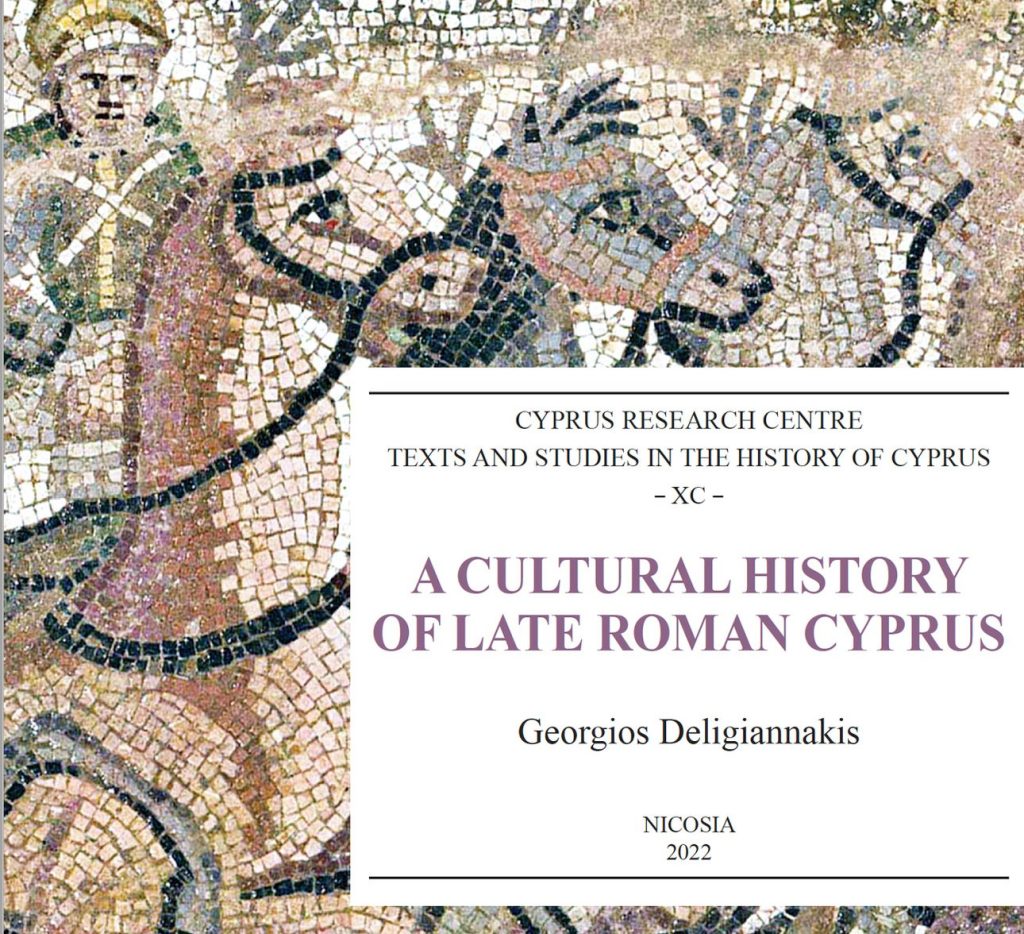 Το Σπίτι της Κύπρου και το Ανοικτό Πανεπιστήμιο Κύπρου συνδιοργανώνουν εκδήλωση παρουσίασης του νέου βιβλίου του Αναπληρωτή Καθηγητή του Ανοικτού Πανεπιστημίου Κύπρου κ. Γιώργου Δεληγιαννάκη, με τίτλο “Μια πολιτιστική ιστορία της Κύπρου κατά την ύστερη ρωμαϊκή περίοδο”. Η μονογραφία κυκλοφορεί από το Κέντρο Επιστημονικών Ερευνών του Υπουργείου Παιδείας, Αθλητισμού και Νεολαίας της Κυπριακή Δημοκρατίας και έχει ως θεματική τη συνύπαρξη Χριστιανών, Εθνικών και Εβραίων στη Ρωμαϊκή Κύπρο κατά την εποχή της όψιμης αρχαιότητας. Για το βιβλίο θα μιλήσουν, η Αναπληρώτρια Καθηγήτρια Ρωμαϊκής Ιστορίας Αριστοτελείου Πανεπιστημίου Θεσσαλονίκης, Μαρία Καντηρέα και η Επίκουρη Καθηγήτρια Ελληνιστικής και Ρωμαϊκής Ιστορίας Δημοκριτείου Πανεπιστήμιου Θράκης, Ελένη Φάσσα.