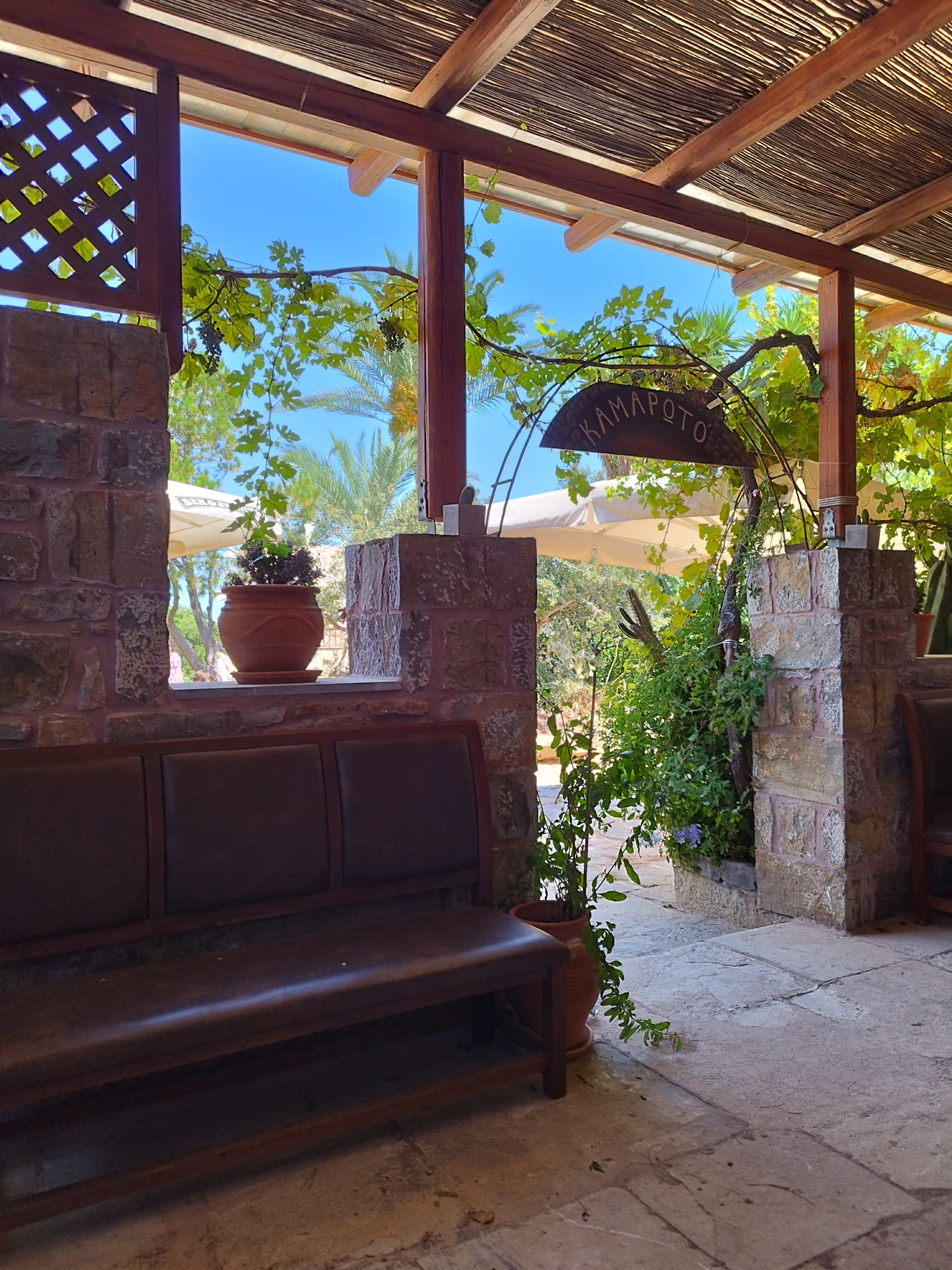 Το καφέ-εστιατόριο “Καμαρωτό” στον προαύλιο χώρο της Μονής Τοπλού. Φωτογραφία: Ευδοκία Βαζούκη