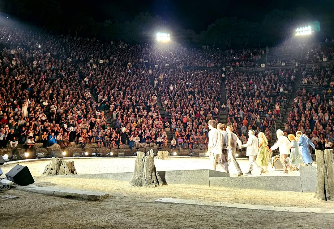 Η παράσταση που αποθεώθηκε στην πρεμιέρα της στους κατάμεστους Δελφούς, που περισσότεροι από 17.000 θεατές χειροκρότησαν όρθιοι στο Αρχαίο Θέατρο της Επιδαύρου, που έκανε sold out τα 4.500 εισιτήρια του Ηρώδειου μέσα σε 48 από το άνοιγμα της προπώλησης, ολοκληρώνει την περιοδεία της σε μια εβδομάδα και όλα τα εισιτήρια είναι ήδη εξαντλημένα.