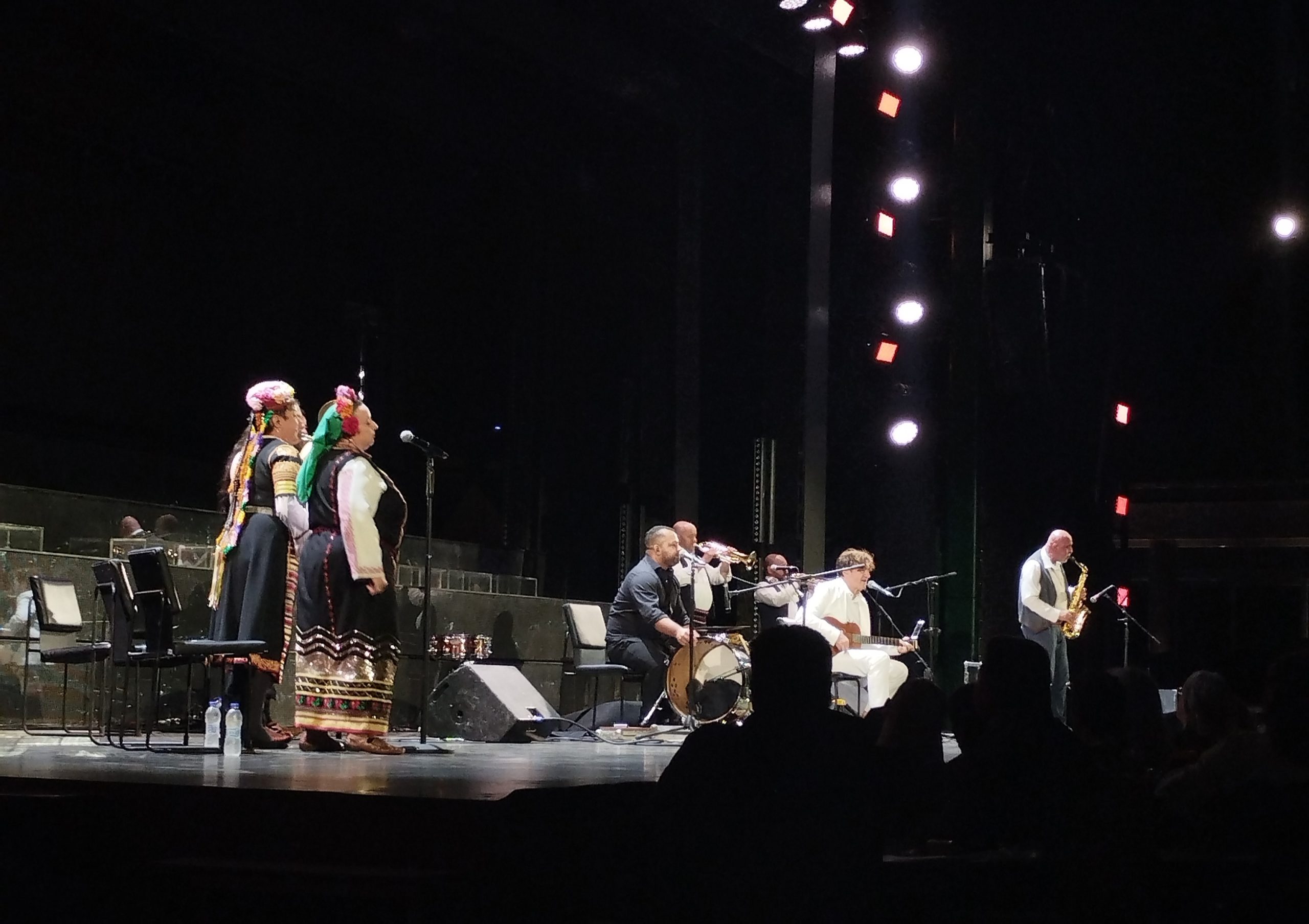 Η αναμονή δεν ήταν μεγάλη μέχρι να εμφανιστεί όλη η μπάντα στην σκηνή ξεκινώντας θεαματικά με τους τρομπετίστες να εμφανίζονται μέσα από το κοινό. Η παρέα του Bregovic είχε κρουστά, τρομπέτες, σαξόφωνο, μια εκπληκτική ανδρική φωνή, δύο κυρίες στα φωνητικά ντυμένες με παραδοσιακές στολές και φυσικά τον ίδιο τον Bregovic με την κιθάρα και τη φωνή του. Την πρώτη ώρα έπαιξαν τραγούδια τα οποία πραγματικά μας παρέσυραν στους βαλκανικούς ρυθμούς -όμως το ότι ήμασταν καθιστοί μας περιόριζε αρκετά- κι έπειτα έκαναν ένα μικρό διάλειμμα. Η επιστροφή τους ήταν ακόμη πιο δυναμική καθώς έπαιξαν ελληνικά τραγούδια από τις συνεργασίες του συνθέτη με την Άλκηστη Πρωτοψάλτη και τον Γιώργο Νταλάρα. Μάλιστα, τα ελληνικά τους ήταν τόσο καλά που όλοι χειροκροτούσαμε ενθουσιασμένοι -κι ας έλεγαν «μας συγχωρείτε για την προφορά μας». Ακούσαμε και πολλά τραγούδια από τις ταινίες «Time of the Gypsies» και «Underground» του σκηνοθέτη Emir Kusturica, για τις οποίες έχει γράψει τη μουσική ο Bregovic. Και φυσικά μας αποχαιρέτησαν με το τραγούδι «Kalasnjikov», που πραγματικά έκανε όλο το θέατρο να σηκωθεί από τις θέσεις του και να χορεύει ρυθμικά.