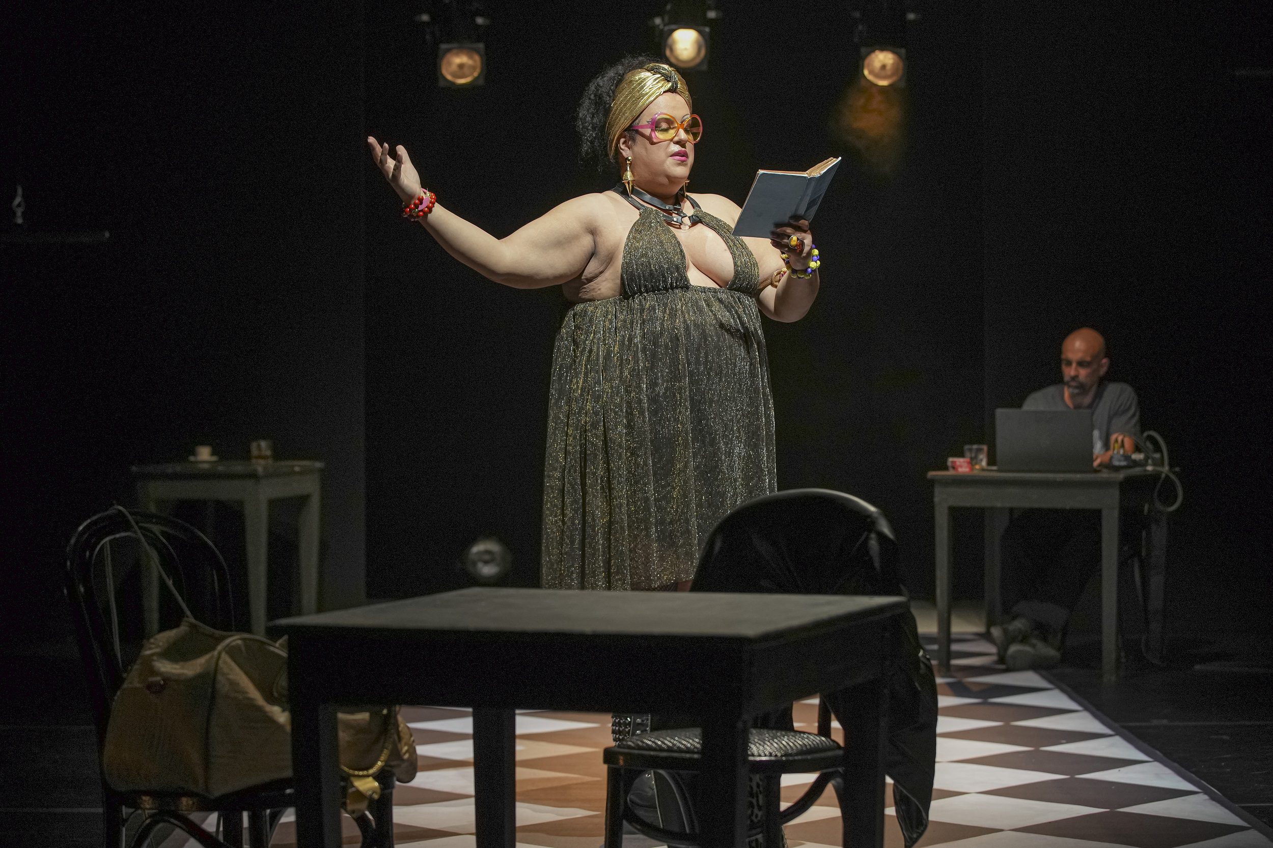 Έχει τυλίξει τους ώμους της με ένα κατακόκκινο πλεκτό σάλι και στο ίδιο χρώμα φορά μια μακριά φούστα. Φιγούρα κατεξοχήν Αλμοδοβαρική. Καθώς ο ήχος από το τσέλο και το βιολί από το σύνολο του Ergon Ensemble καταλαμβάνουν τη σκηνή – ένα νυχτερινό παρακμιακό κέντρο – η φωνή της Μαρία Καστίγια Ντε Λίμα, απαριθμεί ακατάληπτα τα πρόσωπα του Τρωϊκού Πολέμου. «Εκάβη, Πρίαμος. Αγαπώ την οικογένεια μου γιατί με αποδέχθηκε, αποδέχθηκε το νέο μου σώμα», τραγουδά. Κι αν η πληροφορία πως πρόκειται για μια διεμφυλική σοπράνο έχει προηγηθεί της άφιξης της στη Εναλλακτική Σκηνή της ΕΛΣ, δεν θα υποψιαζόσουν ποτέ πως αυτό το πλάσμα είχε ξεκινήσει την καριέρα του στην όπερα ως τενόρος.