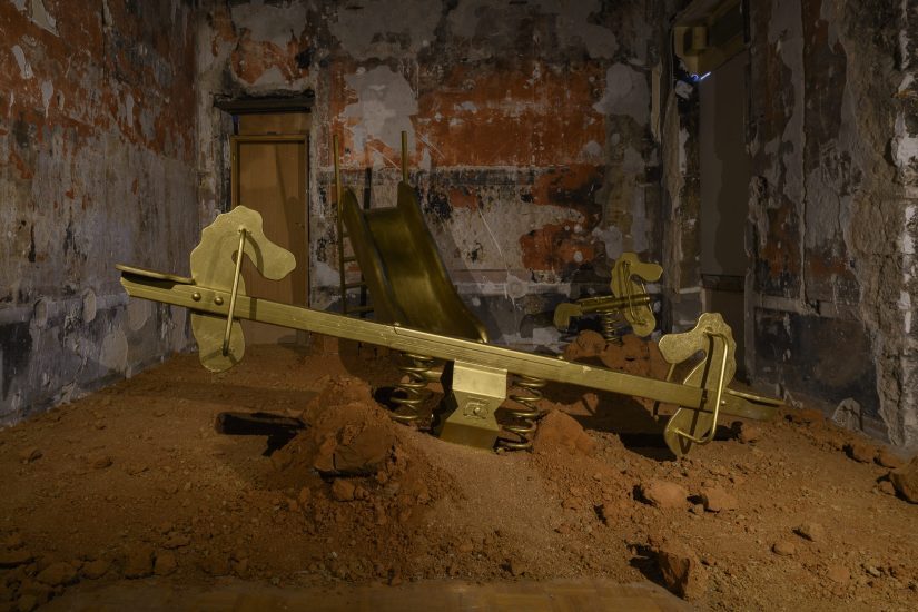 Η παιδική χαρά της Άντας Πετρανάκη στο έργο της Αναζητώντας τον Χαμένο Χρόνο (2024), τίτλος δανεισμένος από τον Προυστ, φαντάζει ζοφερή μέσα στο σκοτεινό, μισογκρεμισμένο δωμάτιο του μεγάρου, αποτελεί πάντως ένα σχόλιο για την απόσταση μεταξύ ωραιοποιημένης μνήμης και παιδικών τραυμάτων, την υποκειμενικότητα, την υπενθύμιση του πεπερασμένου της ανθρώπινης ζωής.