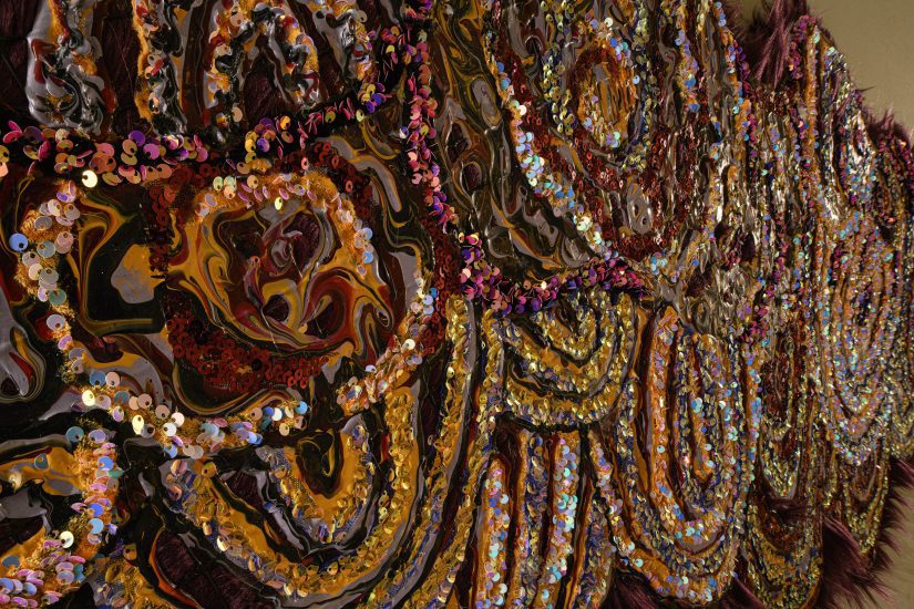 Εντυπωσιακά τα έργα της Stevie Love, Uncharted Territories (2024) σε έναν από τους διαδρόμους του μεγάρου, συμβολίζοντας την εξερεύνηση, την περιπλάνηση στο άγνωστο, την περιέργεια, την ανάγκη για γνώση και ανακάλυψη.