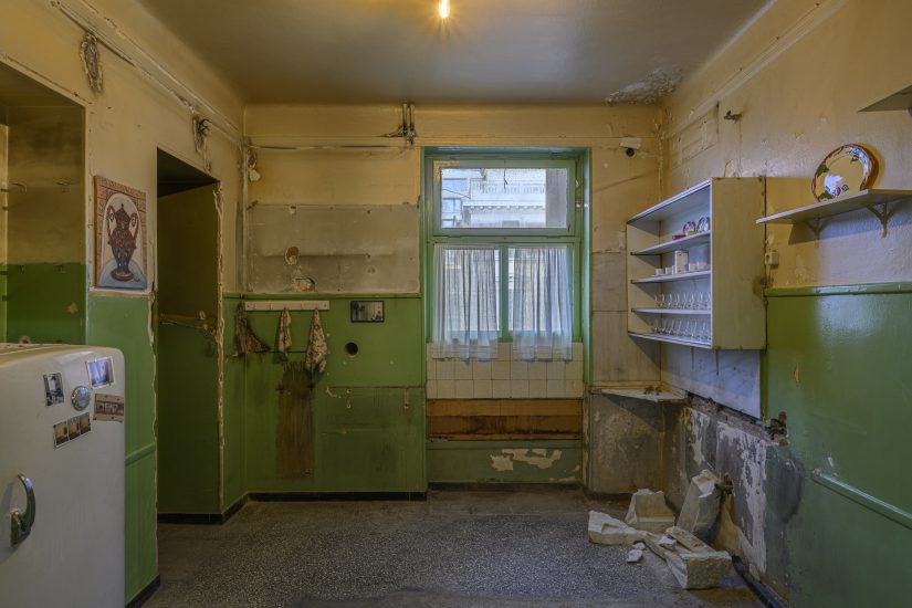 Ένα κτήριο με παρελθόν και πολλές χρήσεις, πολλοί το θυμόμαστε ως κτήριο δικηγορικών και συμβολαιογραφικών γραφείων με τα τότε δικαστήρια της Σανταρόζα απέναντι, μετά ρημαγμένο, αφημένο στην τύχη του, που όμως στέγασε στο ισόγειο τον θρυλικό, αγαπημένο κινηματογράφο Ιντεάλ, το κλείσιμο του οποίου δεν θα σταματήσει να μας στοιχίζει. Λίγο πριν αλλάξει εντελώς και γίνει ένα ακόμα ξενοδοχείο στην καρδιά της Αθήνας, μας επιτράπηκε η είσοδος για να επισκεφθούμε την έκθεση. Κατάλληλο λοιπόν για τη θεματική της φιλαποδημίας, ακατάλληλο γιατί ακριβώς η απώλεια πονάει τόσο πολύ ακόμα.