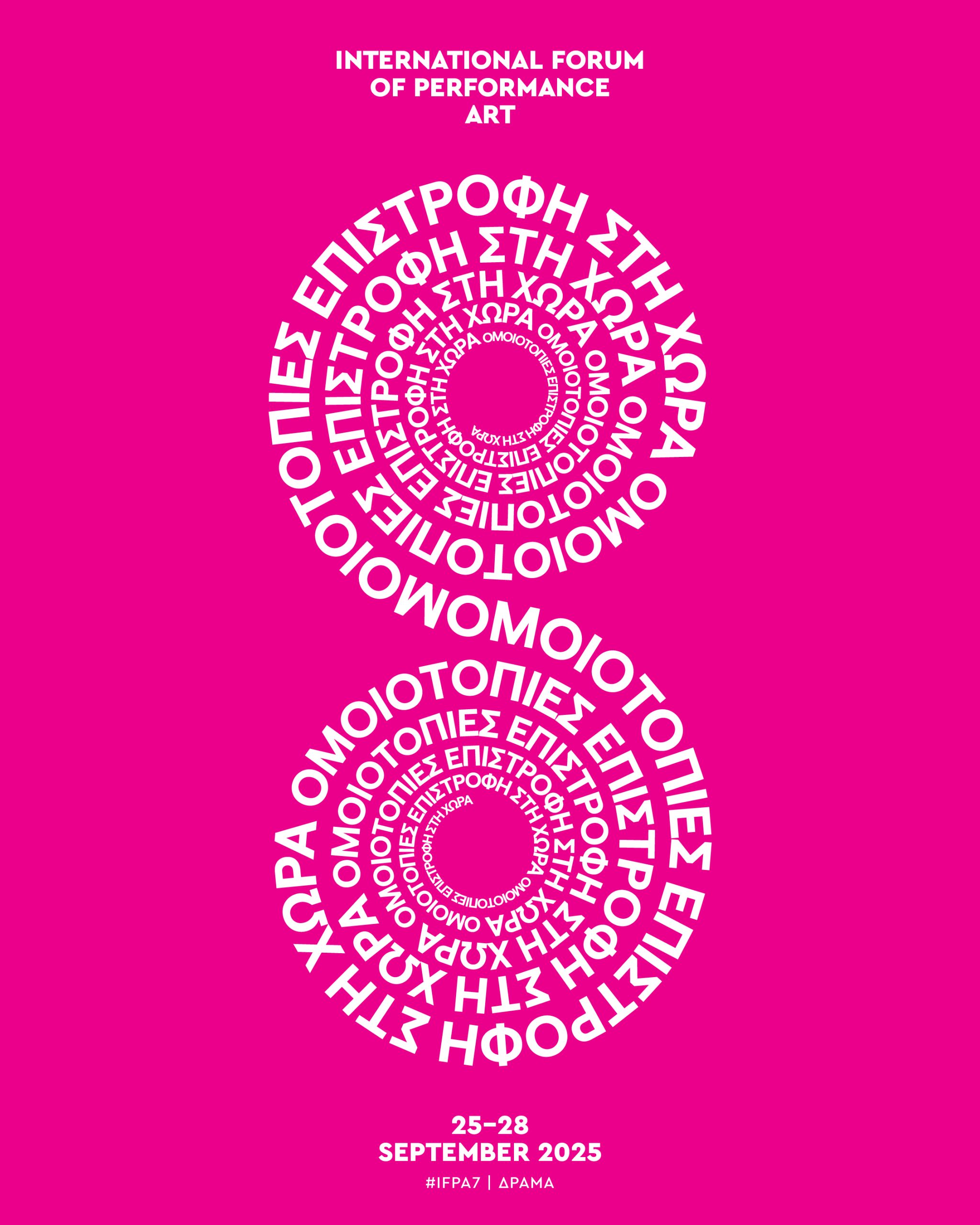 Από τις 25 έως τις 28 Σεπτεμβρίου η “καρδιά” της performance art χτυπάει στη Δράμα. Το 7ο International Forum of Performance Art ξεδιπλώνεται σε ένα τετραήμερο δράσεων -ζωντανές και ψηφιακές παραστάσεις, video art, ομιλίες και ανοιχτά εργαστήρια, με κεντρικό άξονα τη θεματική «Ομοιο-τοπίες / Επιστροφή στη Χώρα», δημιουργώντας έναν ανοιχτό χώρο διαλόγου και καλλιτεχνικής ανταλλαγής με τη συμμετοχή καλλιτεχνών, ακαδημαϊκών και φοιτητών από την Ελλάδα και το εξωτερικό.