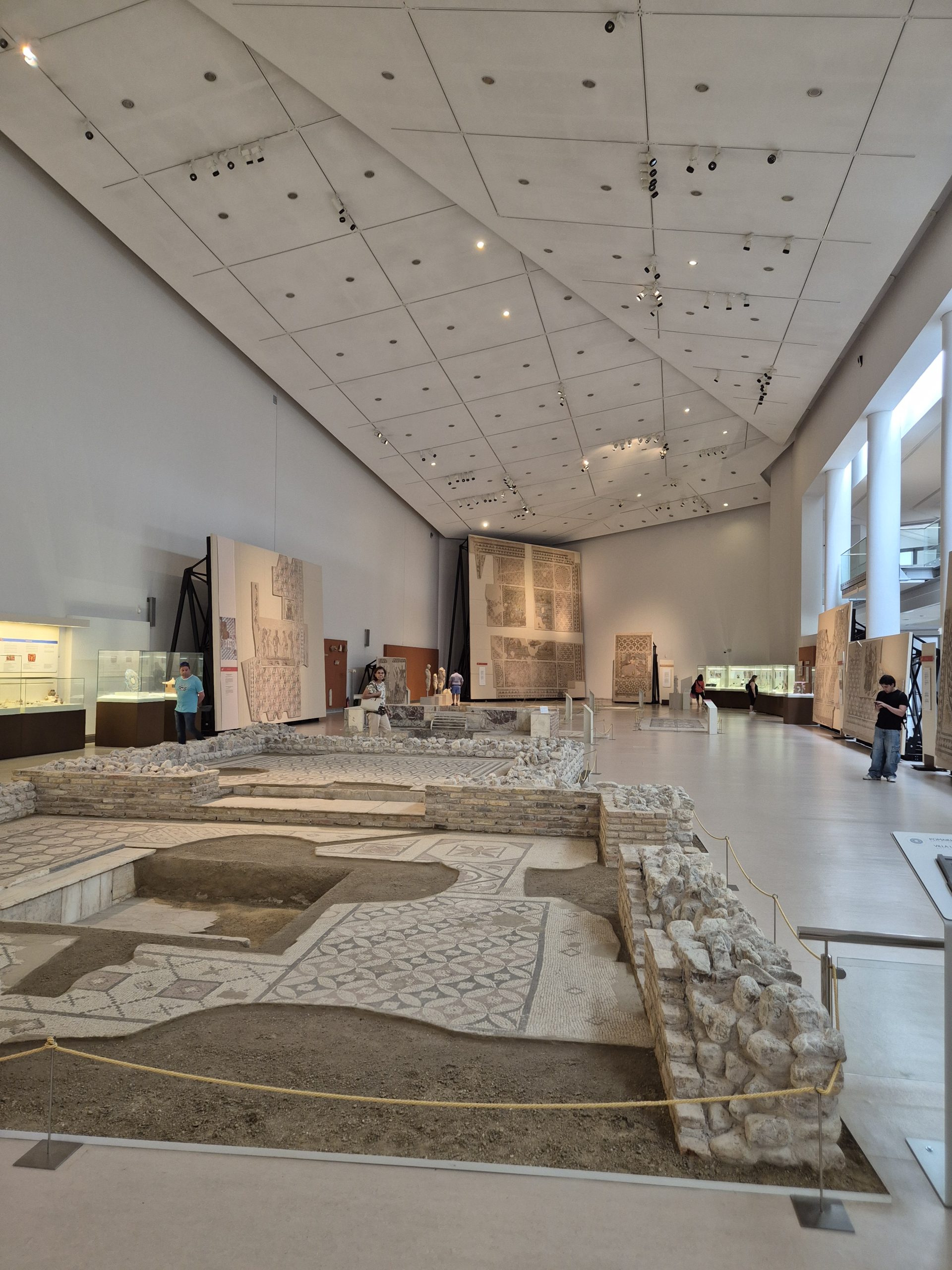 Σταθήκαμε να θαυμάσουμε υπέροχα τεράστια ψηφιδωτά, πολλά από τα οποία είναι τοποθετημένα κάθετα, γεγονός σπάνιο για μουσείο, αλλά και ένα εντυπωσιακό κυψελωτό βιτρό με ελεφαντοστό και υαλόφραγμα. Ανακαλύψαμε μια ευχαριστήρια πλάκα σκλάβας που απελευθερώθηκε από αφέντη της. Όταν μάλιστα αυτό γινόταν ενώπιον θεών και δύο μαρτύρων, σήμαινε ότι οι σκλάβοι δεν πρέπει ποτέ ξανά να σκλαβωθούν. Στο μουσείο θα βρείτε εντυπωσιακά συστήματα αποχέτευσης για συλλογή ομβρίων υδάτων, καθώς και λουτρά και πισίνες που θερμαίνονταν από τον ζεστό αέρα της φωτιάς. Προσπαθήσαμε να καταλάβουμε το λόγο που οι αρχαίοι είχαν θάψει μεγάλα αγάλματα που ανακαλύφθηκαν κάτω από μια γέφυρα στις κοίτες ποταμού. Ίσως να ήταν πολιτικοί και να ήθελαν να σβήσουν τη μνήμη τους, είναι μια εξήγηση.
