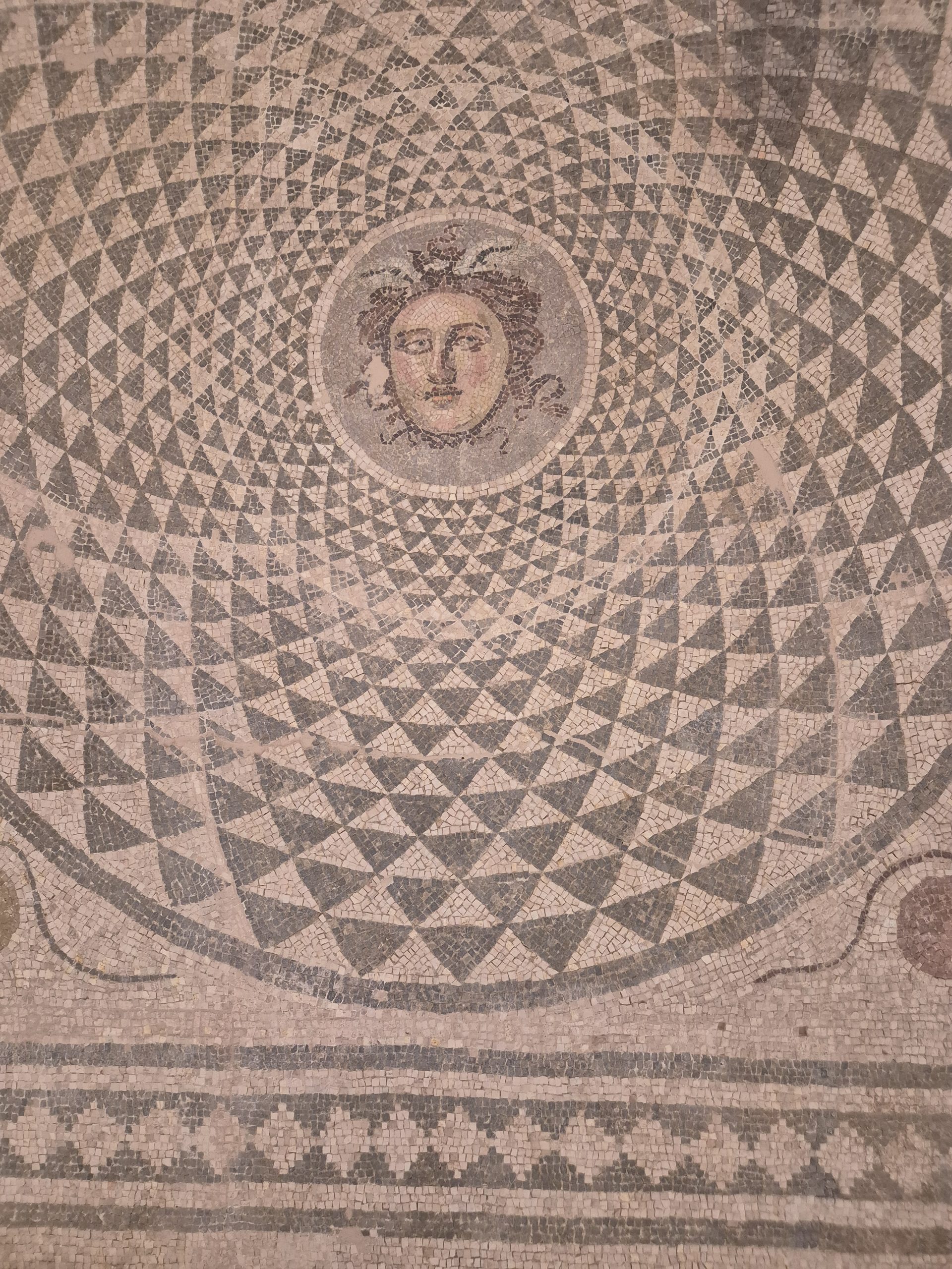 Η μυθική Μέδουσα σε όρθιο ψηφιδωτό στο Αρχαιολογικό Μουσείο Πάτρας