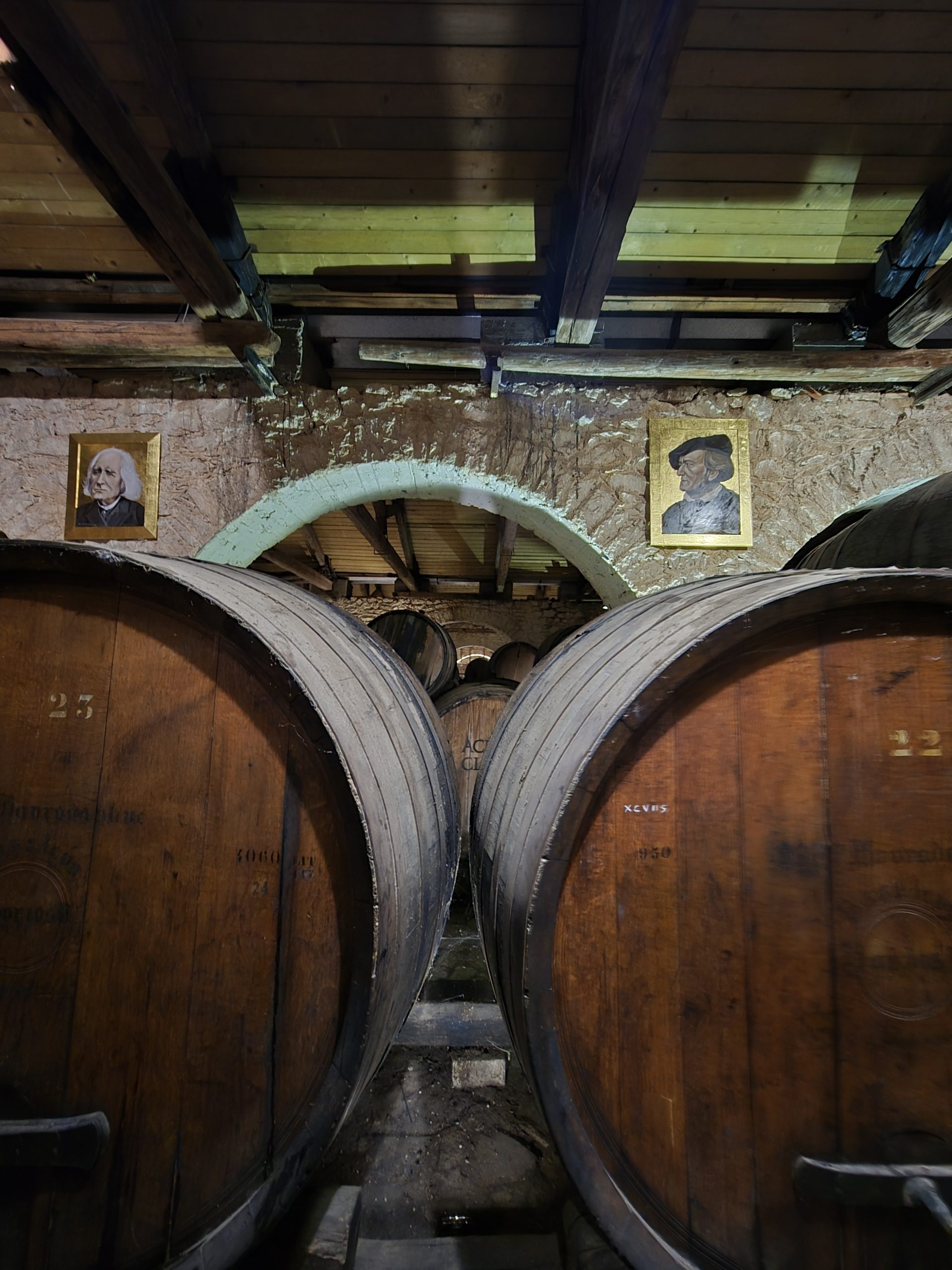 Στο κελάρι βλέπουμε αφιερώσεις στην πριγκίπισσα Σίσσυ, που επισκέφθηκε το οινοποιείο να πιει γλυκιά μαυροδάφνη όταν υπέφερε από φυματίωση, ενώ σε μια περιήγηση στα δρύινα τεράστια, σκαλιστά βαρέλια θα δείτε ονόματα και αφιερώσεις από διάσημους επισκέπτες, βασιλείς, πολιτικούς, συνθέτες, ηθοποιούς κ.ά. Μην σας ξαφνιάσουν οι πίνακες του Λιστ και του Βάγκνερ – ο Κλάους τους θαύμαζε και τους έστελνε μια φιάλη κάθε χρόνο.