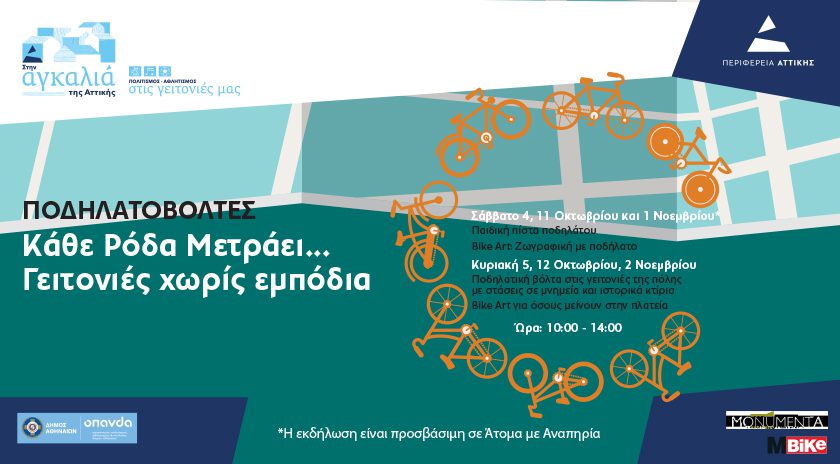 Ο Οργανισμός Πολιτισμού, Αθλητισμού και Νεολαίας του Δήμου Αθηναίων (ΟΠΑΝΔΑ) και η Περιφέρεια Αττικής συνδιοργανώνουν τη δράση «Ποδηλατοβόλτες – Κάθε Ρόδα Μετράει – Γειτονιέςς Χωρίς Εμπόδια», με τη συνεργασία της Monumenta και του M Bike.