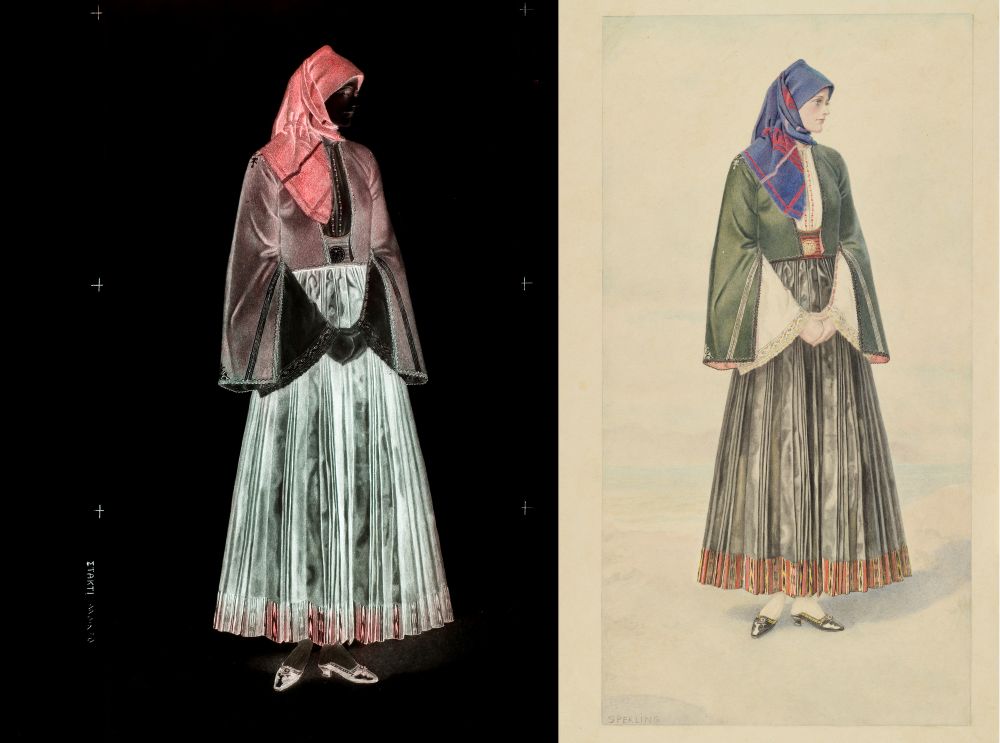 Η αποτύπωση των ενδυμασιών, στην τεκμηρίωση των οποίων συνέδραμε τον Μπενάκη η λαογράφος Αγγελική Χατζημιχάλη, επρόκειτο να γίνει ζωγραφικά και όχι φωτογραφικά. Ο Αντώνης Μπενάκης επέλεξε γι’ αυτό το έργο τον ρώσο ζωγράφο Νίκολας Σπέρλινγκ, τον οποίο είχε γνωρίσει στο Κάιρο και κάλεσε στην Αθήνα προκειμένου να φιλοτεχνήσει 116 πίνακες! Ελάχιστα στοιχεία ήταν γνωστά για τον κοσμογυρισμένο αυτόν καλλιτέχνη, τη διαδρομή του οποίου φωτίζει και τεκμηριώνει για πρώτη φορά η ιστορικός τέχνης Σταλίνα Βουτσινά, στον φροντισμένο και αναλυτικό κατάλογο που συνοδεύει την έκθεση. Και οι τρεις τους θα συναντηθούν στις Β’ Δελφικές Εορτές του 1930, όπου και θα διοργανωθεί «έκθεση χειροτεχνημάτων» και επίδειξη λαϊκών ενδυμασιών.