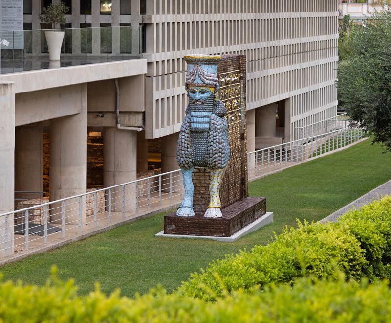 Το Μουσείο Ακρόπολης και ο οργανισμός ΝΕΟΝ παρουσιάζουν το δεύτερο μέρος της τριλογίας Michael Rakowitz & Ancient Cultures, το έργο του Michael Rakowitz Lamassu of Nineveh (2018), σε επιμέλεια του Γενικού Διευθυντή του Μουσείου Ακρόπολης Καθηγητή Νικόλαου Χρ. Σταμπολίδη και της Διευθύντριας του ΝΕΟΝ Ελίνας Κουντούρη. Πρόκειται για μια γλυπτική εγκατάσταση στον εξωτερικό περιβάλλοντα χώρο του Μουσείου Ακρόπολης, στη δυτική του πλευρά προς την οδό Μητσαίων. Το έργο αποτελεί μέρος της σειράς του Rakowitz The Invisible Enemy Should not Exist την οποία ξεκίνησε το 2006 και είναι σε εξέλιξη. Περιλαμβάνει «επανεμφανίσεις» αντικειμένων που λεηλατήθηκαν από το Εθνικό Μουσείο του Ιράκ στη Βαγδάτη μετά την εισβολή των ΗΠΑ το 2003 καθώς και αυτά που καταστράφηκαν από άλλους αρχαιολογικούς χώρους μετά τον πόλεμο. Το Lamassu of Nineveh (2018) αποτελεί ανάθεση για το The Fourth Plinth της πλατείας Τραφάλγκαρ του Λονδίνου. Είναι φτιαγμένο από κονσέρβες σιροπιού χουρμά από το Ιράκ και αποτελεί «επανεμφάνιση» του αγάλματος φτερωτού ταύρου μήκους περίπου 4,3 μέτρων, της προστατευτικής ασσυριακής θεότητας που βρισκόταν στην είσοδο της Πύλης Νεργκάλ της Νινευή από το 700 π.Χ. μέχρι τον Φεβρουάριο του 2015, όταν το ISIS το κατέστρεψε μαζί με αντικείμενα στο κοντινό Μουσείο της Μοσούλης.