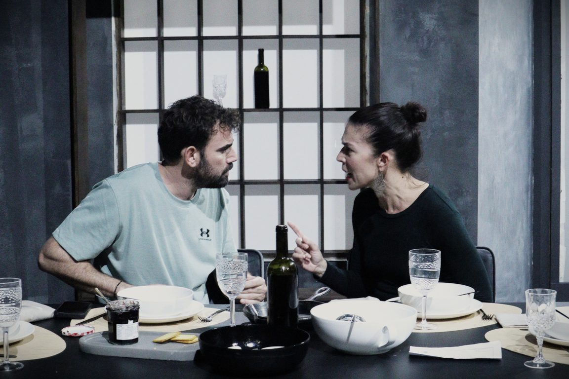 Η Ναταλία Σουίφτ και ο Χάρης Τζωρτζάκης σε σκηνή της παράστασης.