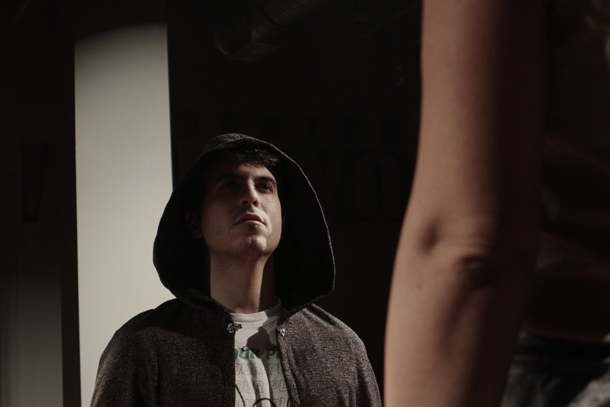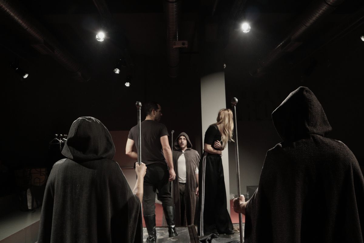 Η πρόβα μοιάζει περισσότερο με τελετουργία – ένα σκηνικό ταξίδι μέσα στο σκοτάδι της ανθρώπινης ψυχής.