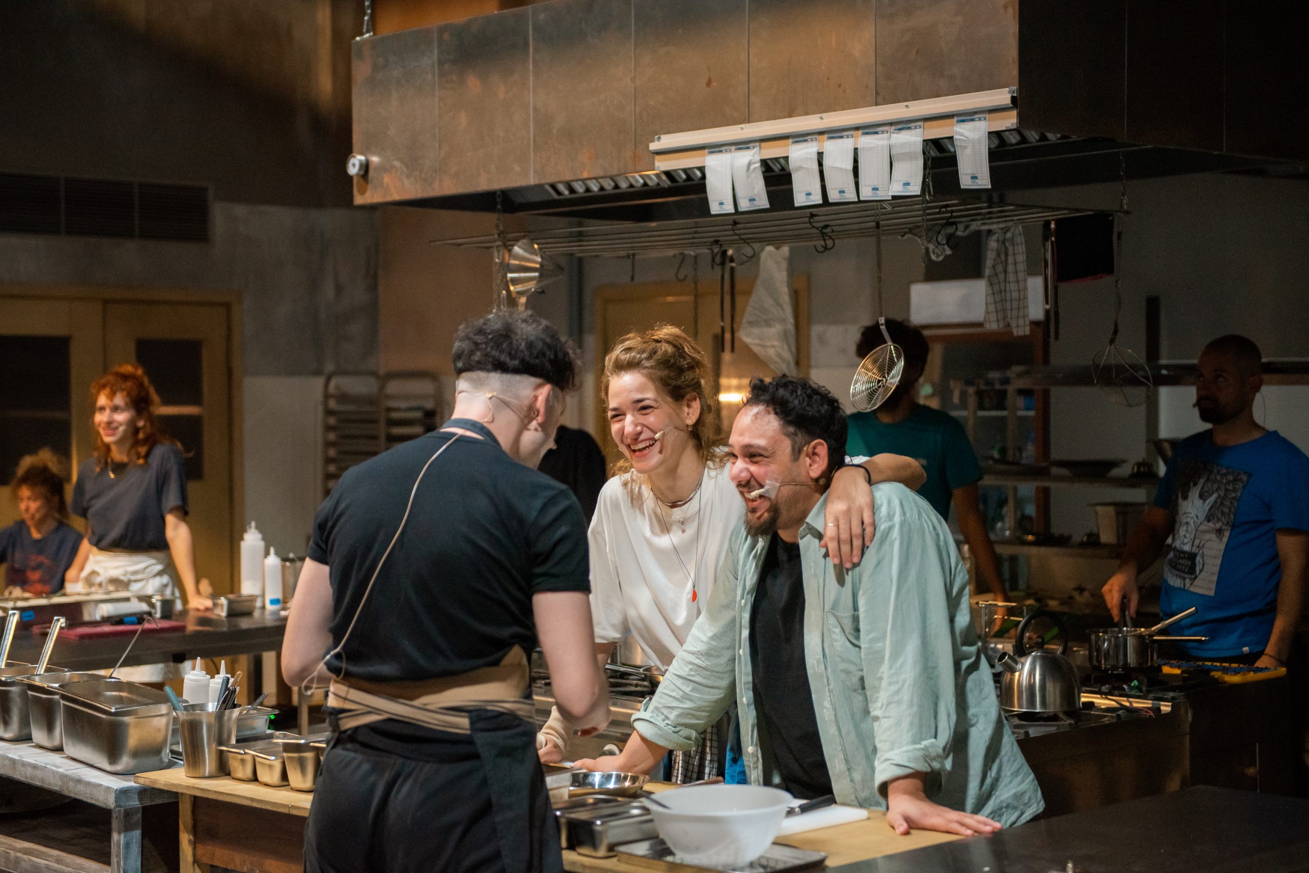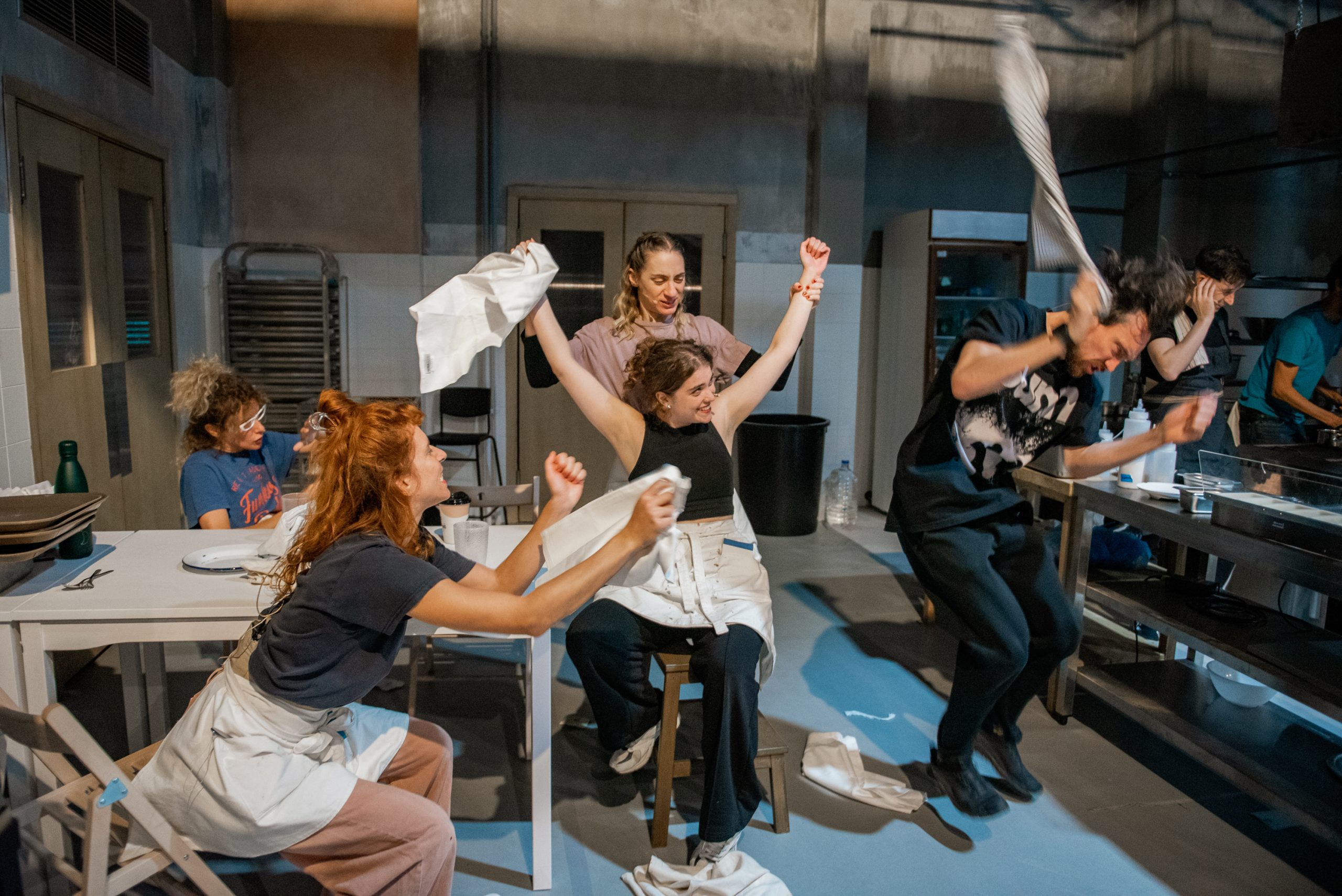 Κι αν η δουλειά στην «Κουζίνα» είναι απάνθρωπη και αβάσταχτη, οι ηθοποιοί της πρωταγωνιστικής ομάδας δηλώνουν το ακριβώς αντίθετο. Ο Τζούλιο Κατσής και η Ειρήνη Μακρή μοιράζονται τη χαρά μιας πολύ ωραίας ομάδας – «μας αρέσει όχι μόνο το έργο αλλά η συνάντηση όσων βρισκόμαστε εδώ», λένε – ενώ ο Μιχάλης Σαράντης πάει τη σκέψη ένα βήμα παρακάτω: «Αυτή η συνθήκη είναι μια πρόκληση στη διαθεσιμότητα του ηθοποιού, κάτι που στο ελληνικό θέατρο σπάνια προπονείται. Έχοντας γαλουχηθεί σε μεγάλα ensemble που δύσκολα συναντάς στο ελεύθερο θέατρο, αυτή τη στιγμή νιώθω ενθουσιασμό για την αλληλεπίδραση μου με άλλους 13 πολύ ικανούς ανθρώπους επί σκηνής που, πέρα από την πρόκληση, μου προσφέρει μια αδιανόητη χαρά. Γιατί σε κάθε πρόβα είναι όλοι παρόντες και διαθέσιμοι».