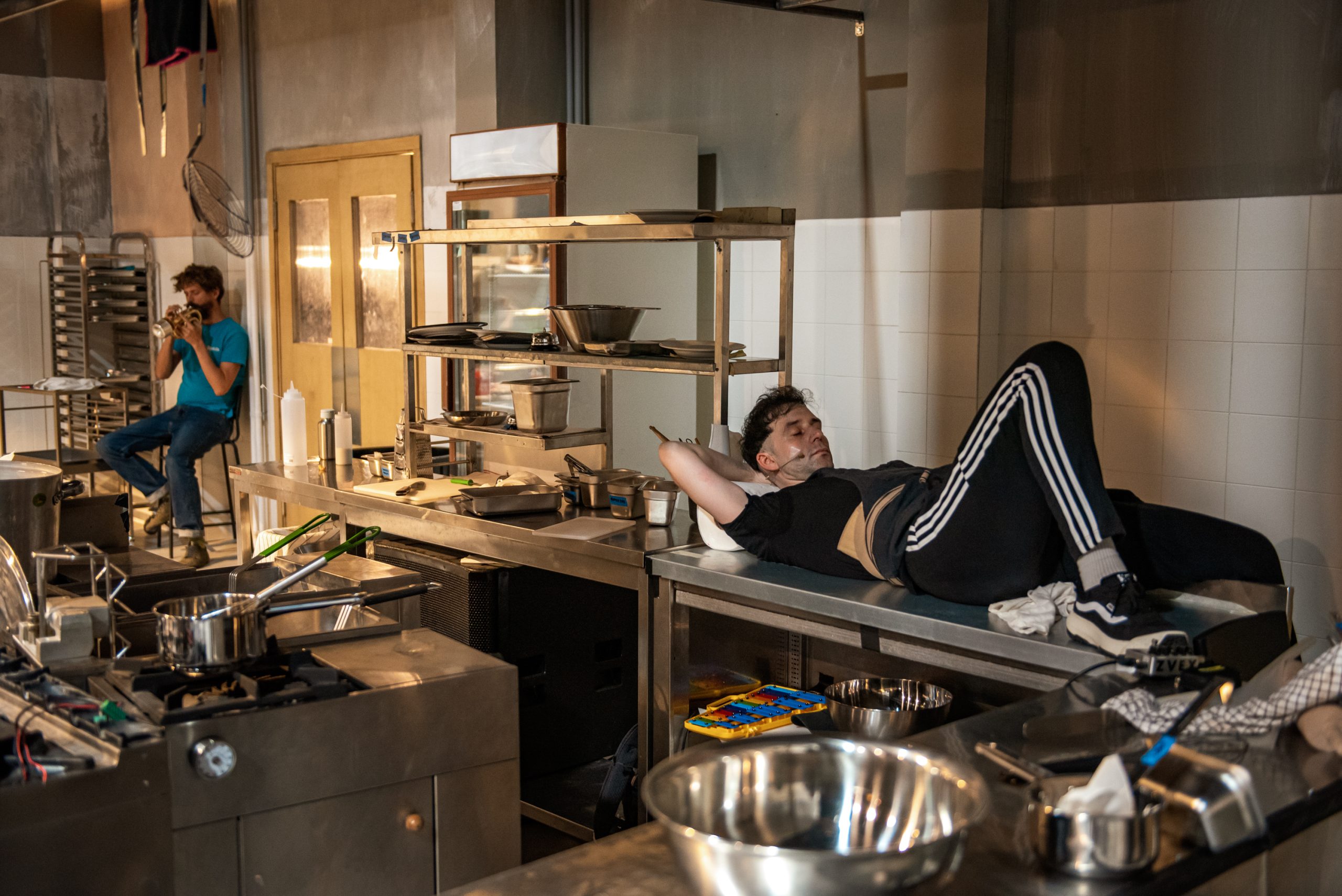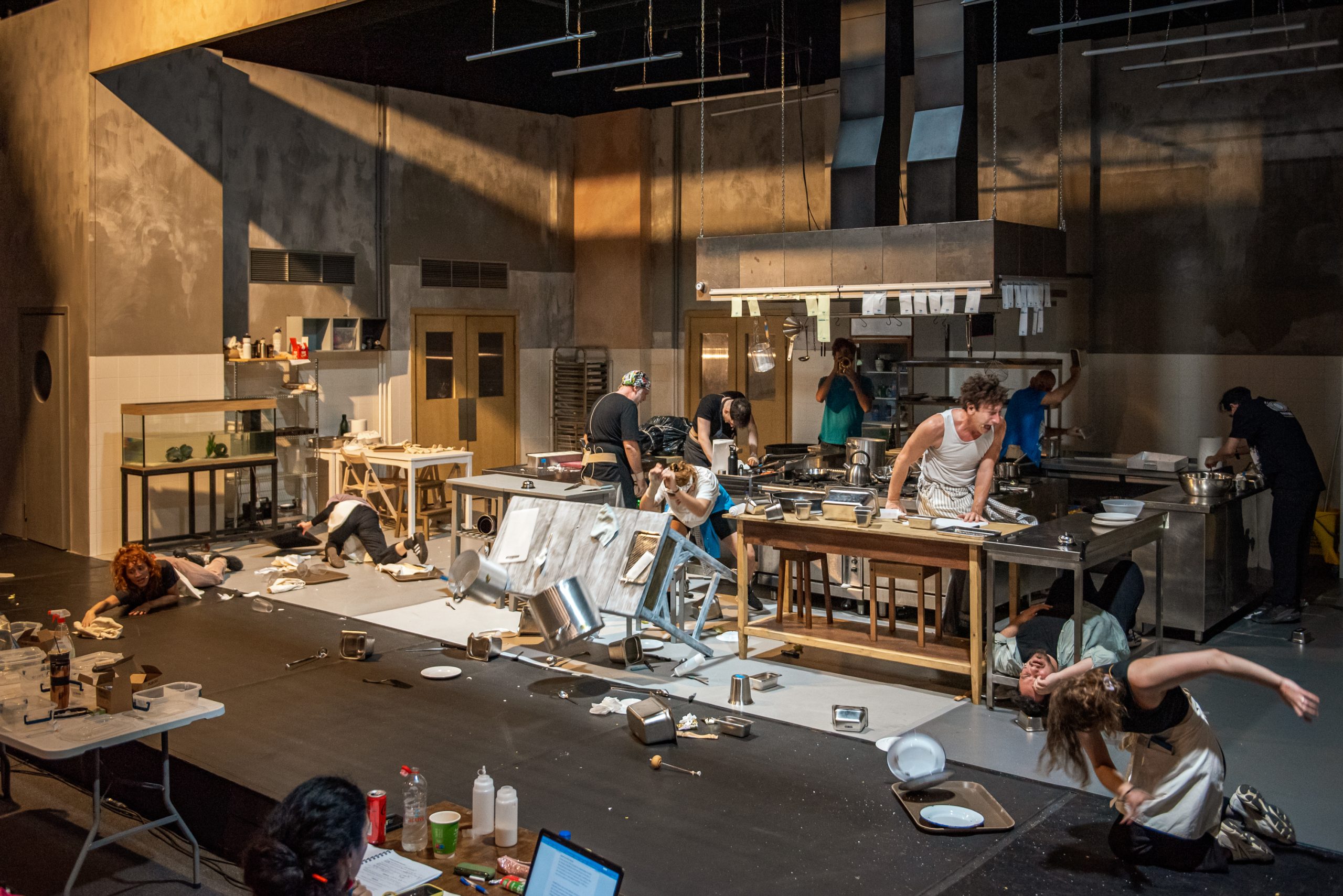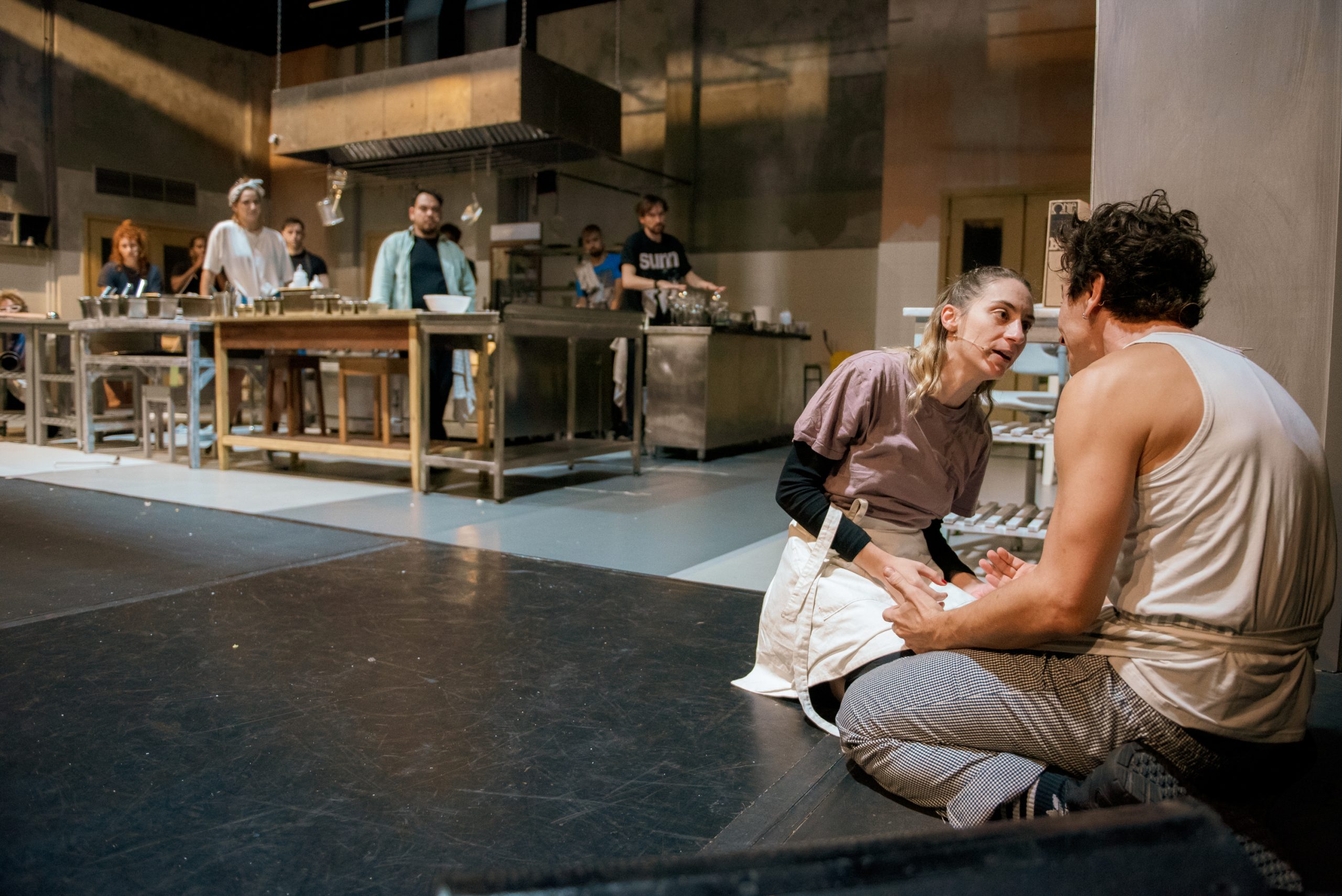 Κι αν η δουλειά στην «Κουζίνα» είναι απάνθρωπη και αβάσταχτη, οι ηθοποιοί της πρωταγωνιστικής ομάδας δηλώνουν το ακριβώς αντίθετο. Ο Τζούλιο Κατσής και η Ειρήνη Μακρή μοιράζονται τη χαρά μιας πολύ ωραίας ομάδας – «μας αρέσει όχι μόνο το έργο αλλά η συνάντηση όσων βρισκόμαστε εδώ», λένε – ενώ ο Μιχάλης Σαράντης πάει τη σκέψη ένα βήμα παρακάτω: «Αυτή η συνθήκη είναι μια πρόκληση στη διαθεσιμότητα του ηθοποιού, κάτι που στο ελληνικό θέατρο σπάνια προπονείται. Έχοντας γαλουχηθεί σε μεγάλα ensemble που δύσκολα συναντάς στο ελεύθερο θέατρο, αυτή τη στιγμή νιώθω ενθουσιασμό για την αλληλεπίδραση μου με άλλους 13 πολύ ικανούς ανθρώπους επί σκηνής που, πέρα από την πρόκληση, μου προσφέρει μια αδιανόητη χαρά. Γιατί σε κάθε πρόβα είναι όλοι παρόντες και διαθέσιμοι».