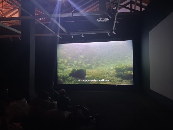 Στην Αποθήκη Β1 του Λιμανιού, λοιπόν, είδαμε την πρώτη ενότητα της Μπιενάλε, ενώ είχαμε την ευκαιρία να περιηγηθούμε στην έκθεση και να δούμε από κοντά πώς ο χώρος μεταμορφώθηκε σε μια πειραματική σκηνή φαντασίας και προβληματισμού.