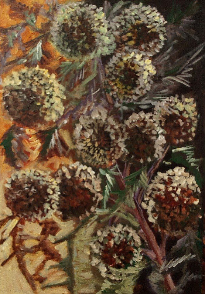 «Στη νέα ενότητα έργων του Βαγγέλη Καρανάσιου, τα σαρκώδη φυτά ενός παράδοξου μακρινού παραδείσου και οι ντυμένες με άνθη γυναίκες που γαλήνια, χωρίς αιδώ, ακουμπούν τη γυμνότητά τους καταμεσής του βλέμματος, συμπλέκονται ως ιδεατοί τόποι επιθυμίας. Ως τόποι εφήμεροι και ψιθυριστικοί, κατάμεστοι από θροΐσματα θνήσκουσας ωραιότητας και ένσαρκης ανθοφορίας.