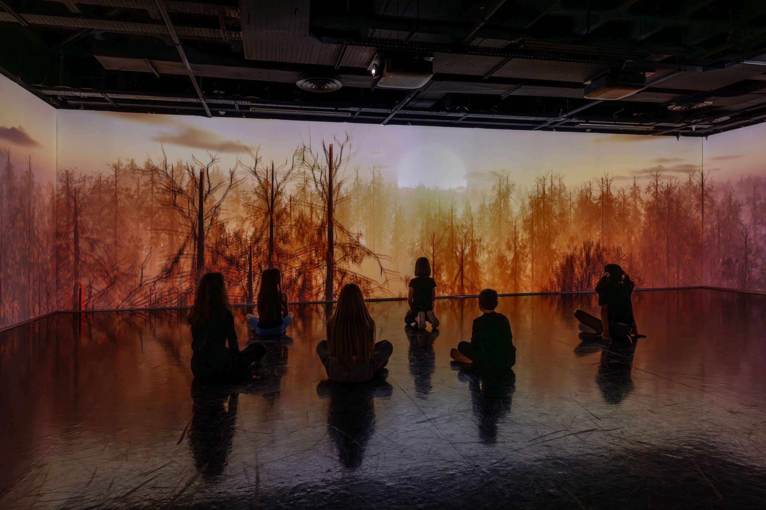 Το παραπάνω ερώτημα σε συνοδεύει προς την έξοδο, αφού έχεις ήδη παρακολουθήσει την 360° προβολή για την κλιματική αλλαγή με τίτλο «Η αλήθεια κατάματα». Η προβολή σε κυκλώνει με εικόνες της Γης που καταστρέφεται, σε βάζει μέσα στο ίδιο το οικοσύστημα και σε κάνει να αντιλαμβάνεσαι όχι μόνο την επιτακτική ανάγκη για δράση, αλλά και το πώς κάθε επιλογή σου αλληλεπιδρά με τον πλανήτη. Η πίεση για άμεση δράση γίνεται σχεδόν «χειροπιαστή», καθώς νιώθεις πως κάθε κίνηση και απόφαση του καθενός μας επηρεάζει την τύχη της Γης.