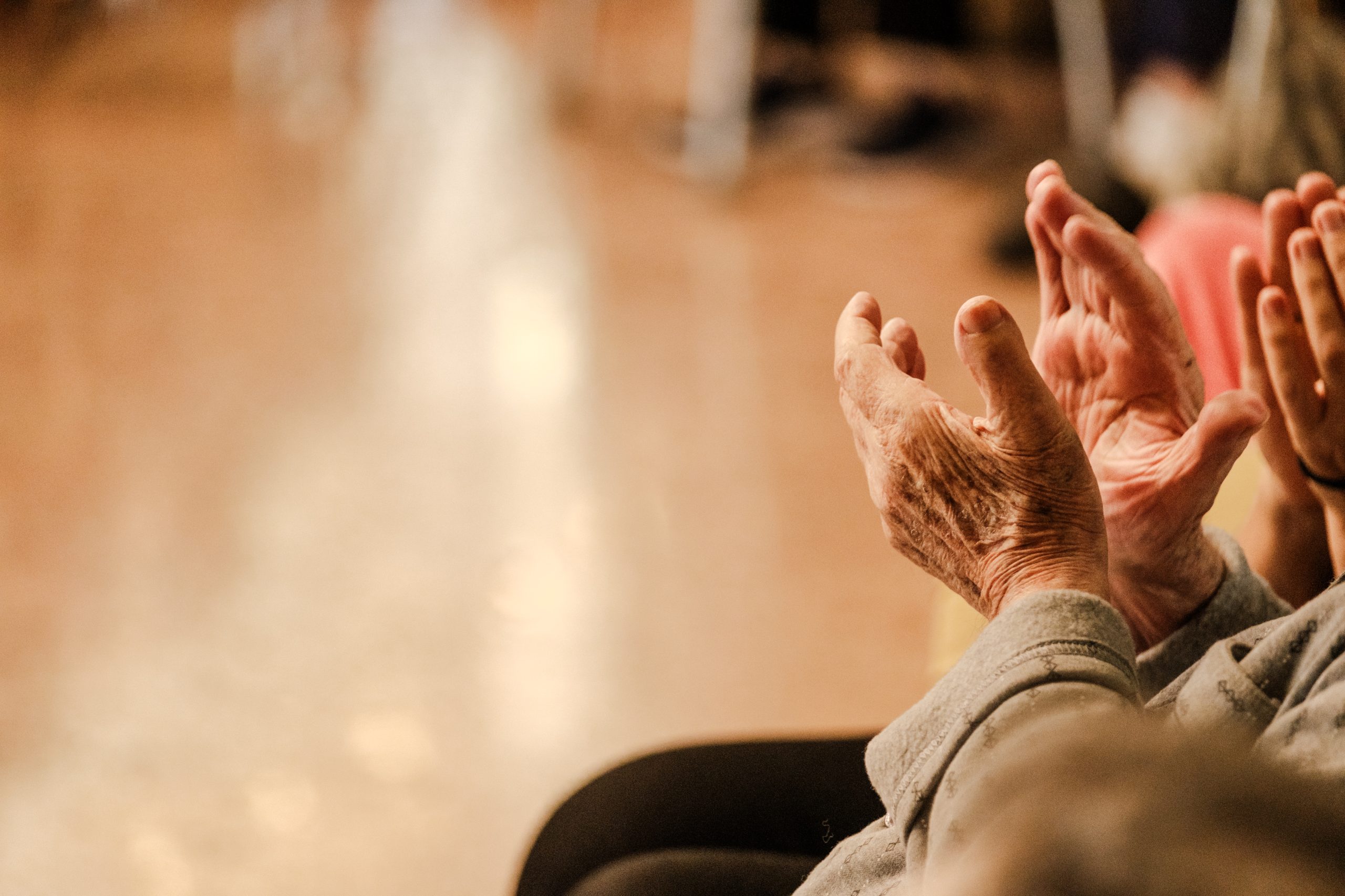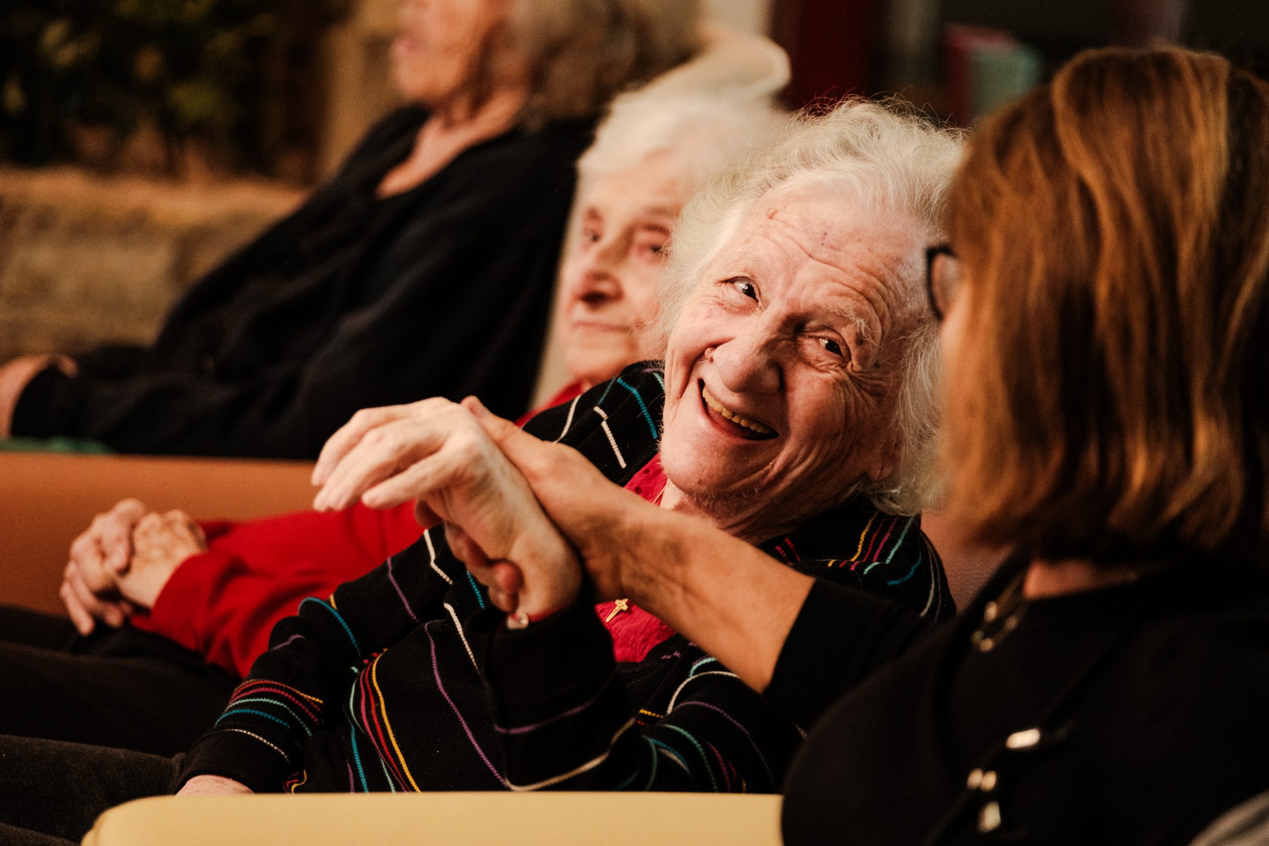 Γύρω τους πάνω από 50 ηλικιωμένοι, περισσότερες γυναίκες παρά άνδρες, με γνωστικά ή και κινητικά προβλήματα, άλλοι καθισμένοι αναπαυτικά σε πολυθρόνες, άλλοι στα αμαξίδια τους ή με ένα πι σε αναμονή, προσπαθούν να βρουν τον ρυθμό των τραγουδιών: με παλαμάκια, με τον ήχο των δαχτύλων τους, ή συναντώντας γνώριμους στίχους για να συνοδεύσουν τους νεαρούς ερμηνευτές. Με την ενθάρρυνση των φροντιστών τους, συγγενών ή επαγγελματιών υγείας, βρίσκουν τρόπο να συμμετέχουν. Ακόμα κι όταν κάποιοι (δεν είναι λίγοι) έχουν χάσει οριστικά τη δυνατότητα της λεκτικής επικοινωνίας, παρατηρούν με περιέργεια τη νέα κατάσταση.
