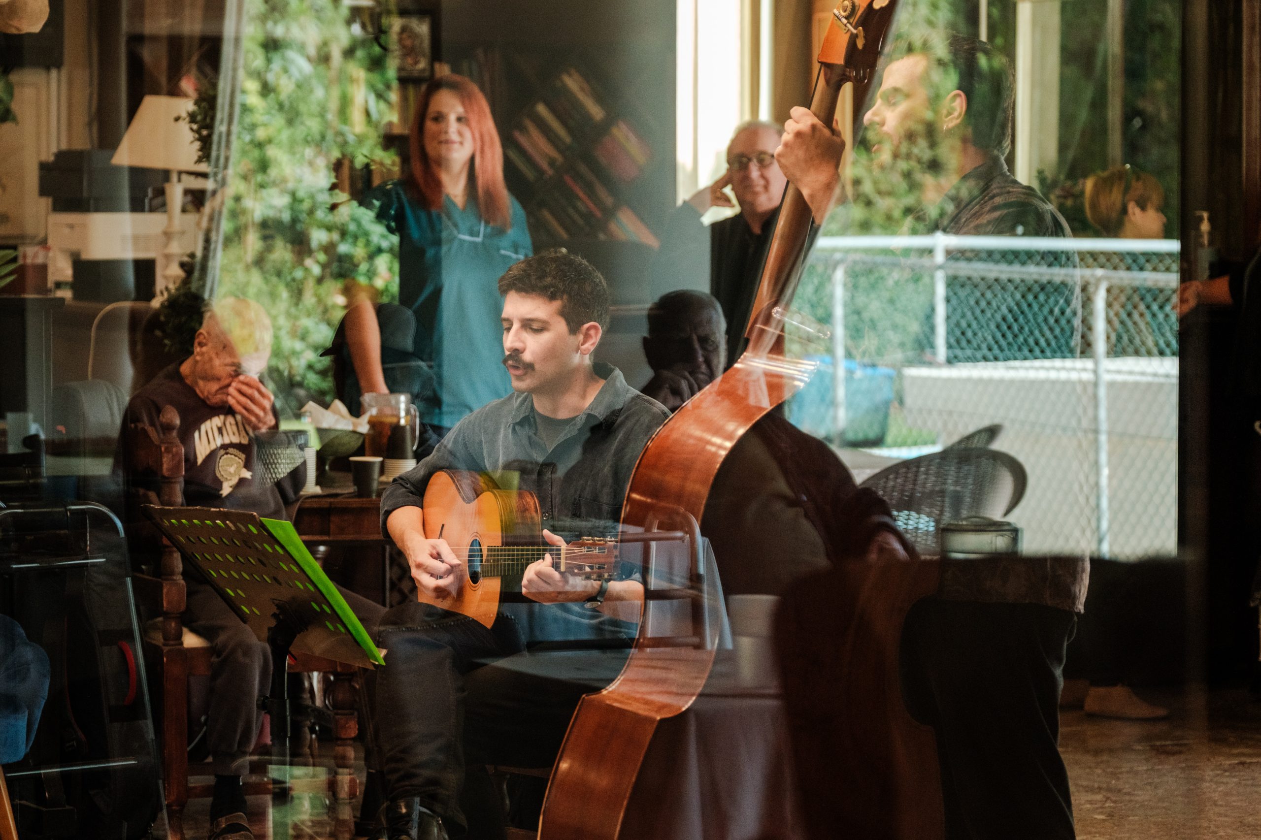 Στον παράμεσο του δεξιού χεριού, διακρίνεται η χρυσή της βέρα. Χειροκροτεί ρυθμικά. Δεν θα μάθεις το όνομα της, αλλά θα ακούσεις τη φωνή της καθώς τραγουδάει Γιώργο Ζαμπέτα στο «Τι σου ‘κανα και με εγκατέλειψες». Το σημερινό πρωϊνό δεν έχει τη συνηθισμένη ρουτίνα στη Μονάδα Φροντίδας Ηλικιωμένων Sivilla στη Γλυφάδα. Οι μουσικοί και τραγουδιστές Φάνης Ζαχόπουλος και Δημήτρης Τάσαινας έχουν πάρει θέση στο λόμπι: ο πρώτος με την ακουστική κιθάρα του κι ο δεύτερος με το κόντρα μπάσο. Σήμερα, εκπροσωπώντας τον θεσμό των εκπαιδευτικών προγραμμάτων της Εθνικής Λυρικής Σκηνής, οι δυο τους δίνουν την τρίτη συναυλία τους σε χώρους φροντίδας ηλικιωμένων.