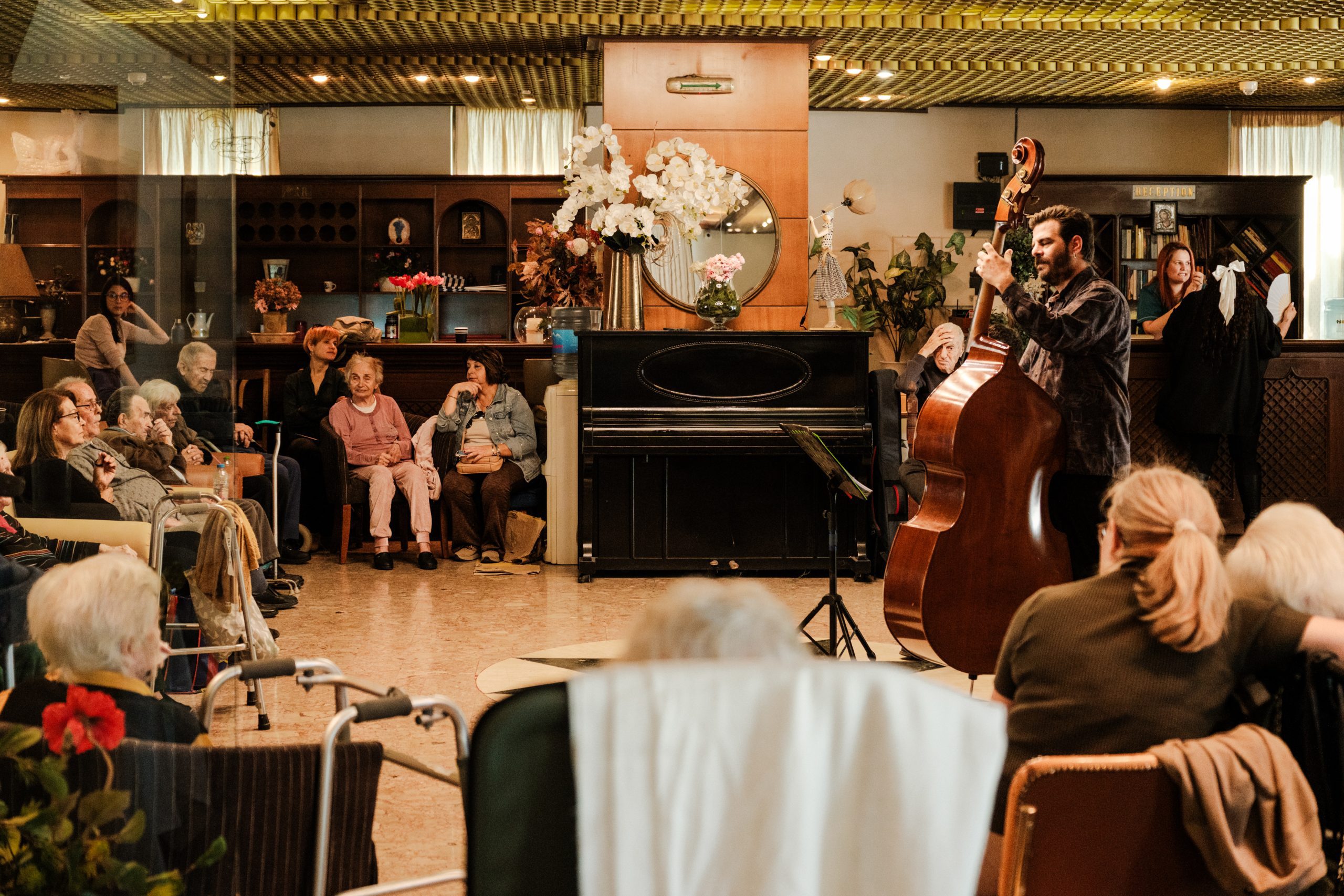 Στον παράμεσο του δεξιού χεριού, διακρίνεται η χρυσή της βέρα. Χειροκροτεί ρυθμικά. Δεν θα μάθεις το όνομα της, αλλά θα ακούσεις τη φωνή της καθώς τραγουδάει Γιώργο Ζαμπέτα στο «Τι σου ‘κανα και με εγκατέλειψες». Το σημερινό πρωϊνό δεν έχει τη συνηθισμένη ρουτίνα στη Μονάδα Φροντίδας Ηλικιωμένων Sivilla στη Γλυφάδα. Οι μουσικοί και τραγουδιστές Φάνης Ζαχόπουλος και Δημήτρης Τάσαινας έχουν πάρει θέση στο λόμπι: ο πρώτος με την ακουστική κιθάρα του κι ο δεύτερος με το κόντρα μπάσο. Σήμερα, εκπροσωπώντας τον θεσμό των εκπαιδευτικών προγραμμάτων της Εθνικής Λυρικής Σκηνής, οι δυο τους δίνουν την τρίτη συναυλία τους σε χώρους φροντίδας ηλικιωμένων.