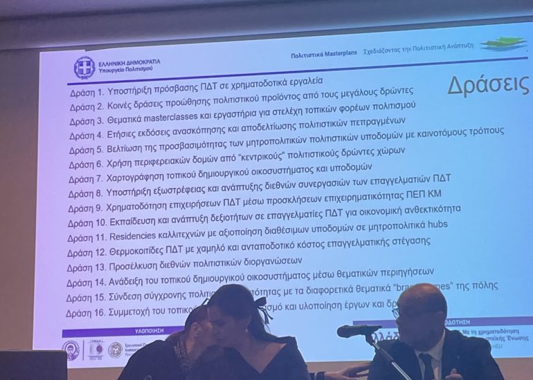 Την περασμένη εβδομάδα, στο Αρχαιολογικό Μουσείο Θεσσαλονίκης, παρουσιάστηκε το Πολιτιστικό Masterplan της πόλης, σηματοδοτώντας την ολοκλήρωση του κύκλου των τεσσάρων ημερίδων του Υπουργείου Πολιτισμού για τον σχεδιασμό 15 πολιτιστικών Masterplans σε ολόκληρη τη χώρα.