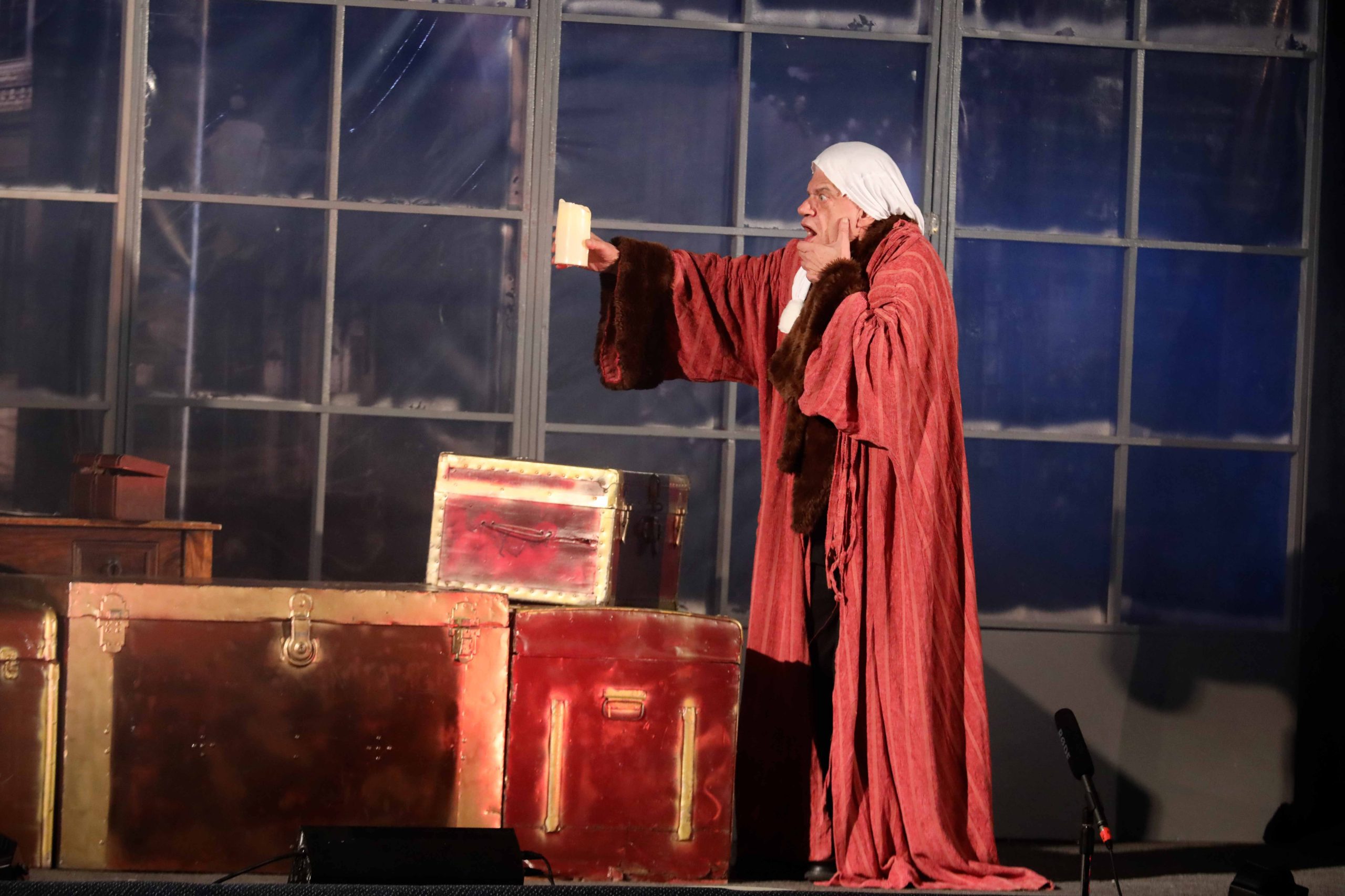 Τον ρόλο του Σκρουτζ ερμηνεύει για δεύτερη συνεχόμενη χρονιά ο Τάκης Παπαματθαίου συνεχίζοντας την παράδοση μετά τους εξαιρετικούς Κώστα Ρωμαίο και Μάνο Πίντζη.