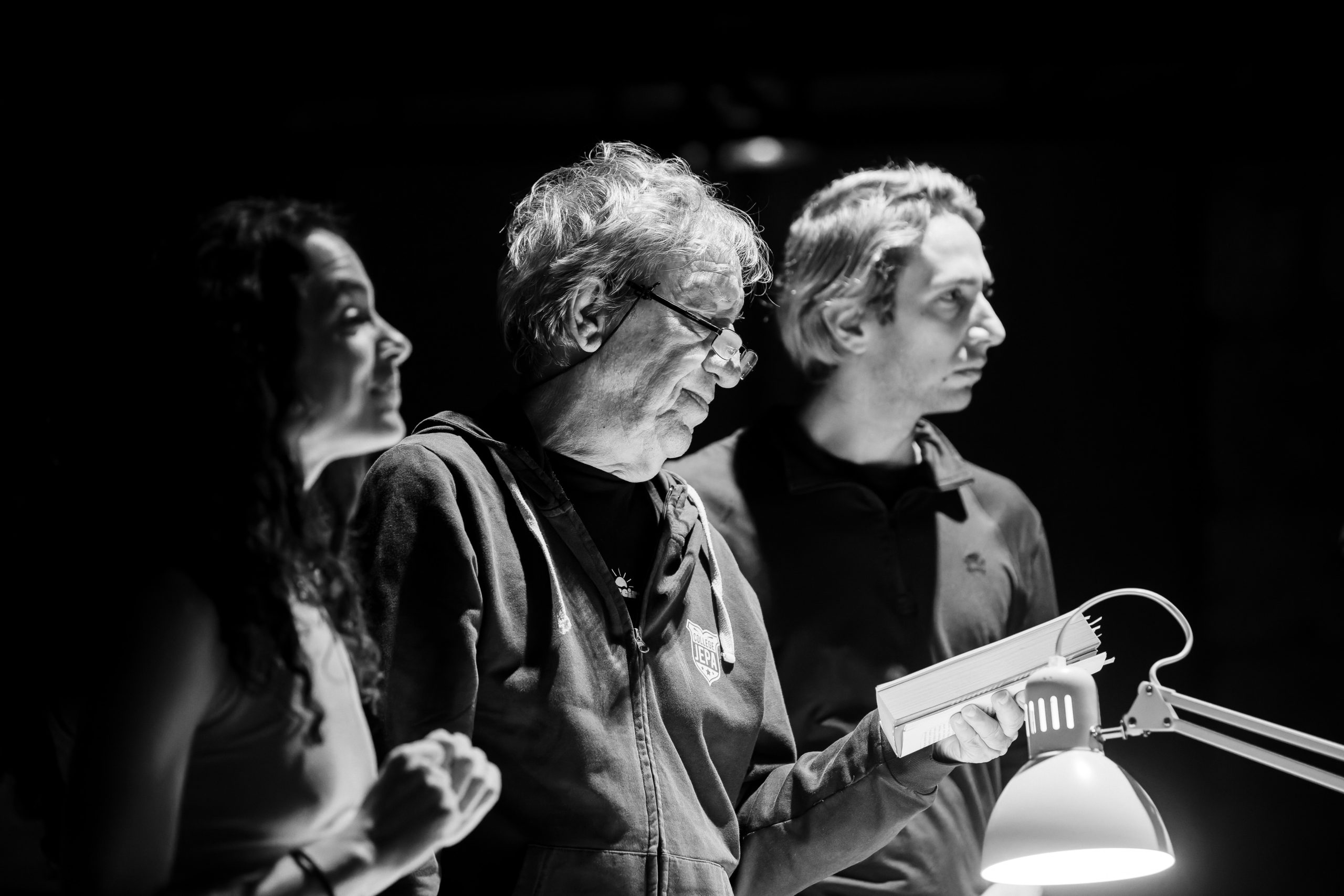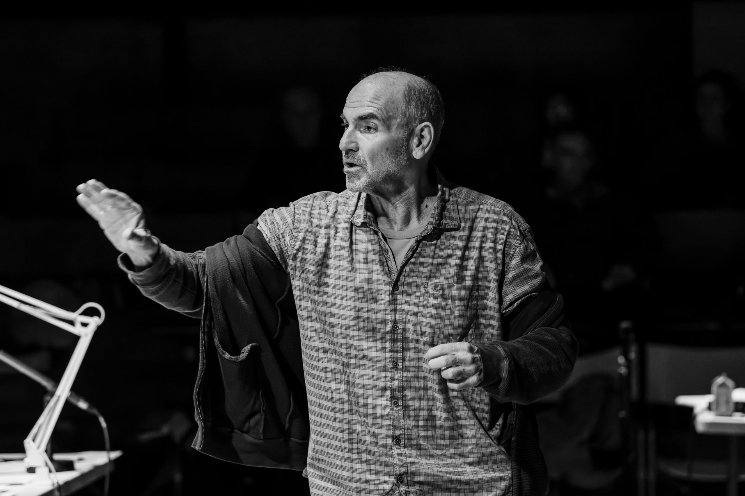 «Μπορείτε να διασχίσετε τη σκηνή», με παροτρύνουν από την ταξιθεσία του Εθνικού, όπου ήδη η πρόβα βρίσκεται σε εξέλιξη. Το κάνω νυχοπατώντας, αλλά ένα νεύμα του Ακύλα Καραζήση από την άλλη άκρη της αίθουσας με καθησυχάζει να μην βιάζομαι. Σε αυτή την πρόβα, ο θεατής είναι, εκτός από καλοδεχούμενος, μέρος της διαδικασίας. Η ιδέα υλοποιείται, εδώ και τρεις εβδομάδες, ως μια σύλληψη των επικεφαλής της Πειραματικής Σκηνής (του ηθοποιού και σκηνοθέτη) Ακύλα Καραζήση και (της ηθοποιού και συγγραφέα) Νεφέλης Μαϊστράλη και ως έκφραση μιας νέας εποχής για τον οργανισμό, υπό την καλλιτεχνική διεύθυνση της Αργυρώς Χιώτη.