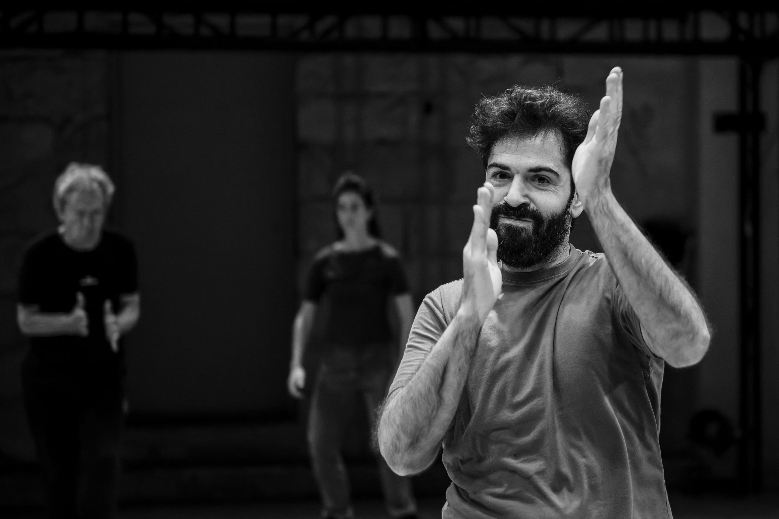Η εικόνα αυτού του, φαινομενικά, οργανωμένου θεατρικού εργαστηρίου ανατρέπεται ανά πάσα στιγμή: από τους ηθοποιούς που βρίσκονται σε διαρκή κίνηση ή συνθέτουν χορικά σύνολα, από το «μαέστρο» Ακύλα Καραζήση που αθόρυβα δίνει οδηγίες σε καθέναν από αυτούς, από τη μουσική που κυρίως παίζουν η Νεφέλη Μαϊστράλη, η Θάλεια Σταματέλου και ο Τίτος Γρηγορόπουλος, από το κοινό που, σε σημεία, εκούσια ή ακούσια, συμμετέχει. «Είναι μια τρομερά αναζωογονητική διαδικασία, μας δίνεται η δυνατότητα να δοκιμάζουμε χωρίς να πρέπει να λογοδοτήσουμε αν δεν βρούμε το κέντρο μας από την πρώτη φορά. Είναι μια διαρκώς, εν δυνάμει, συνθήκη», ομολογεί ο Βασίλης Καραμπούλας, ο πλέον έμπειρος της ομάδας, που ενώ έχει περάσει μια ολόκληρη ζωή μέσα στο μοίρασμα της πρόβας, μόνο τώρα τη βιώνει κάτω από το βλέμμα του θεατή. «Μας δίνετε ένα πλούσιο πεδίο», προσθέτει η Θάλεια Σταματέλου «αφού δημιουργούμε θέατρο, απαλλαγμένοι από το φόβο του αποτελέσματος, με πολύ μεγαλύτερη ελευθερία, γεγονός που οδηγεί την ομάδα σε έναν πολύ πιο ουσιαστικό συντονισμό».