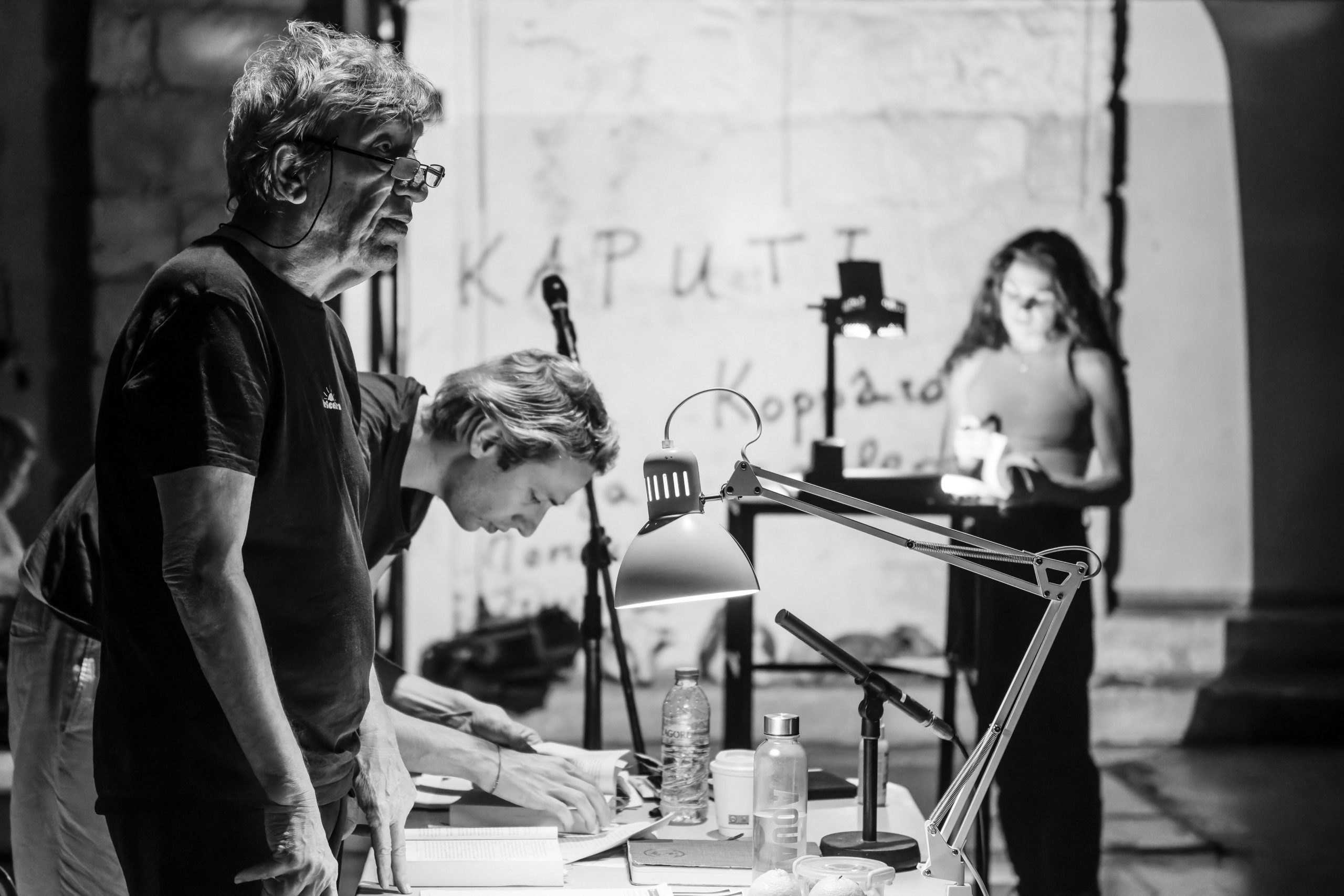 Σε αυτό το κάδρο, η Πειραματική Σκηνή έχει αποκτήσει ένα ολόδικο της ensemble 16 ηθοποιών, όπως προέκυψε από μια μακρά διαδικασία ακροάσεων. Σήμερα, απόγευμα Πέμπτης στο Δίπυλον, συναντώ την πρώτη οκταμελή ομάδα· για την ώρα, ανεπτυγμένη γύρω από τραπέζια πρόβας με χαρακτηριστικούς χαμηλούς φωτισμούς να εκκινούν από μια δραματοποιημένη ανάγνωση του «Καπούτ», του εμβληματικού έργου του Κούρτσιο Μαλαπάρτε, γραμμένου μέσα στις φλόγες του Β΄ Παγκοσμίου Πολέμου.