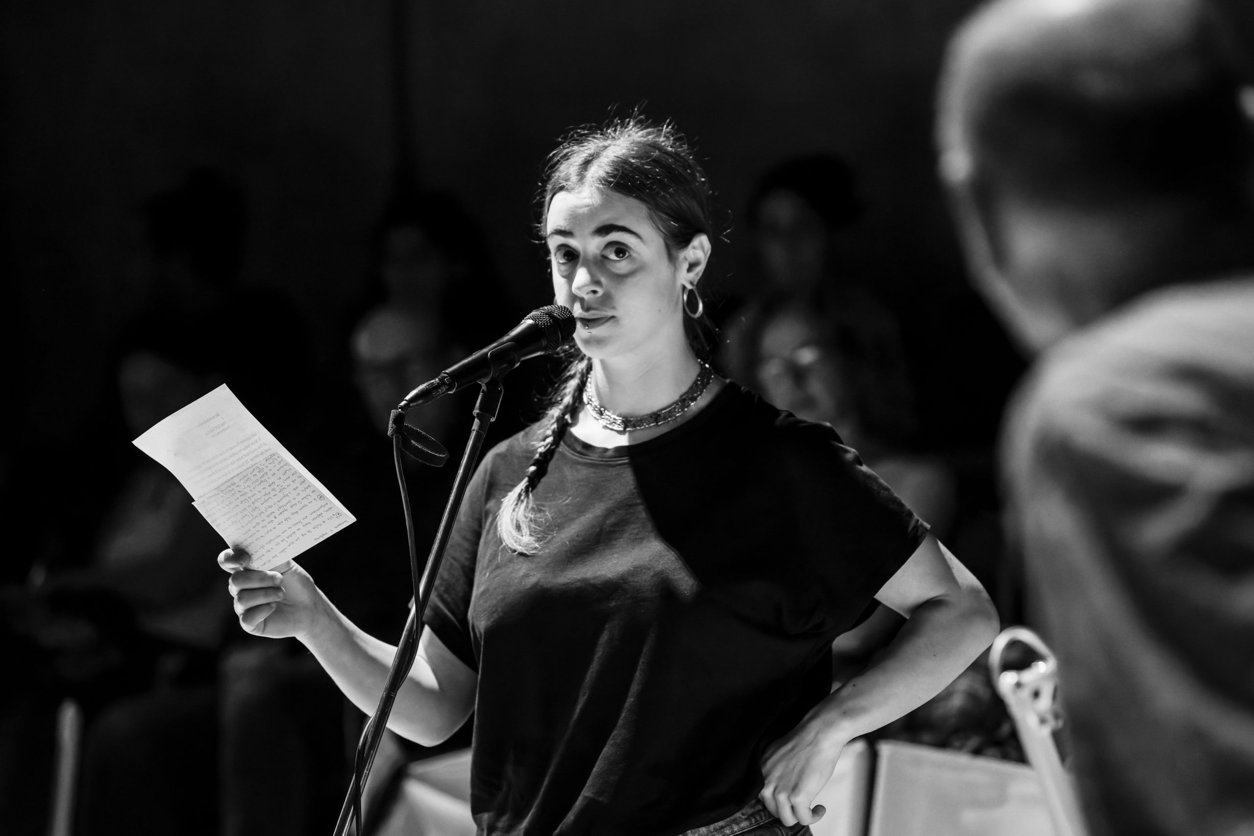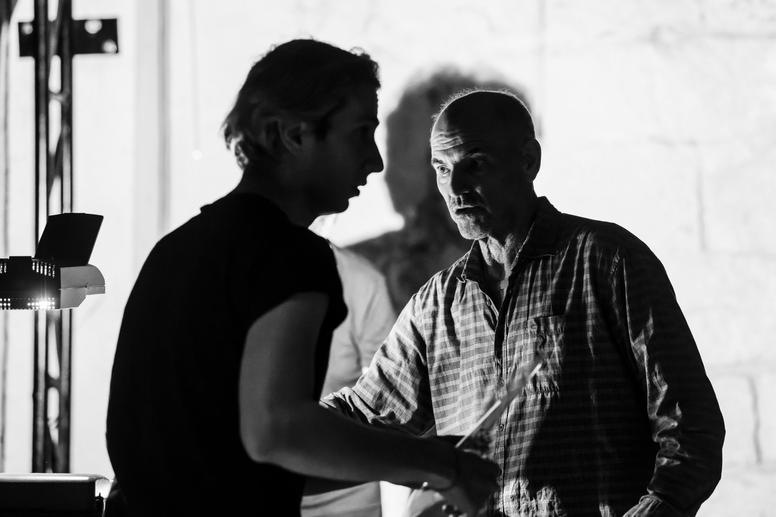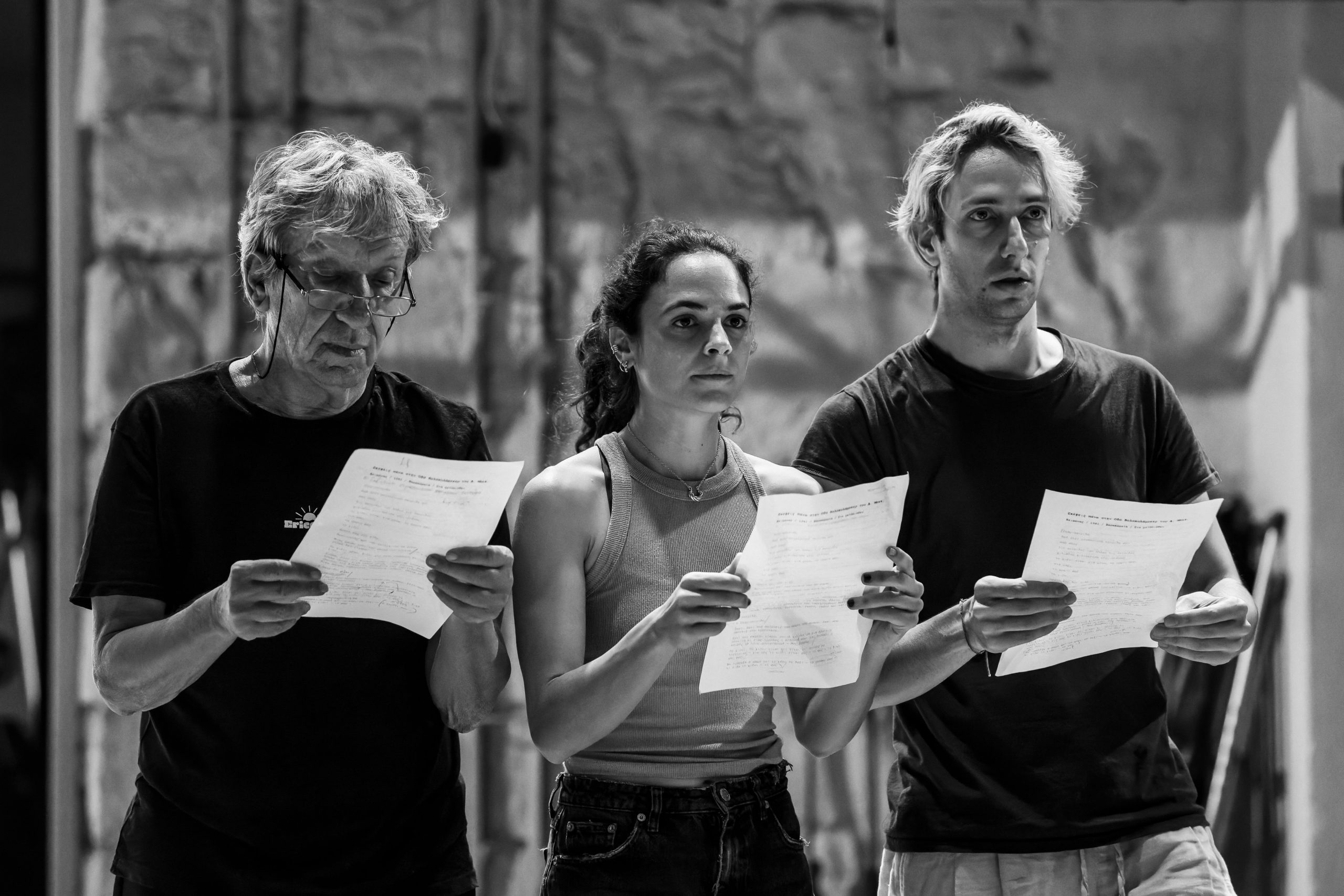«Μπορείτε να διασχίσετε τη σκηνή», με παροτρύνουν από την ταξιθεσία του Εθνικού, όπου ήδη η πρόβα βρίσκεται σε εξέλιξη. Το κάνω νυχοπατώντας, αλλά ένα νεύμα του Ακύλα Καραζήση από την άλλη άκρη της αίθουσας με καθησυχάζει να μην βιάζομαι. Σε αυτή την πρόβα, ο θεατής είναι, εκτός από καλοδεχούμενος, μέρος της διαδικασίας. Η ιδέα υλοποιείται, εδώ και τρεις εβδομάδες, ως μια σύλληψη των επικεφαλής της Πειραματικής Σκηνής (του ηθοποιού και σκηνοθέτη) Ακύλα Καραζήση και (της ηθοποιού και συγγραφέα) Νεφέλης Μαϊστράλη και ως έκφραση μιας νέας εποχής για τον οργανισμό, υπό την καλλιτεχνική διεύθυνση της Αργυρώς Χιώτη.