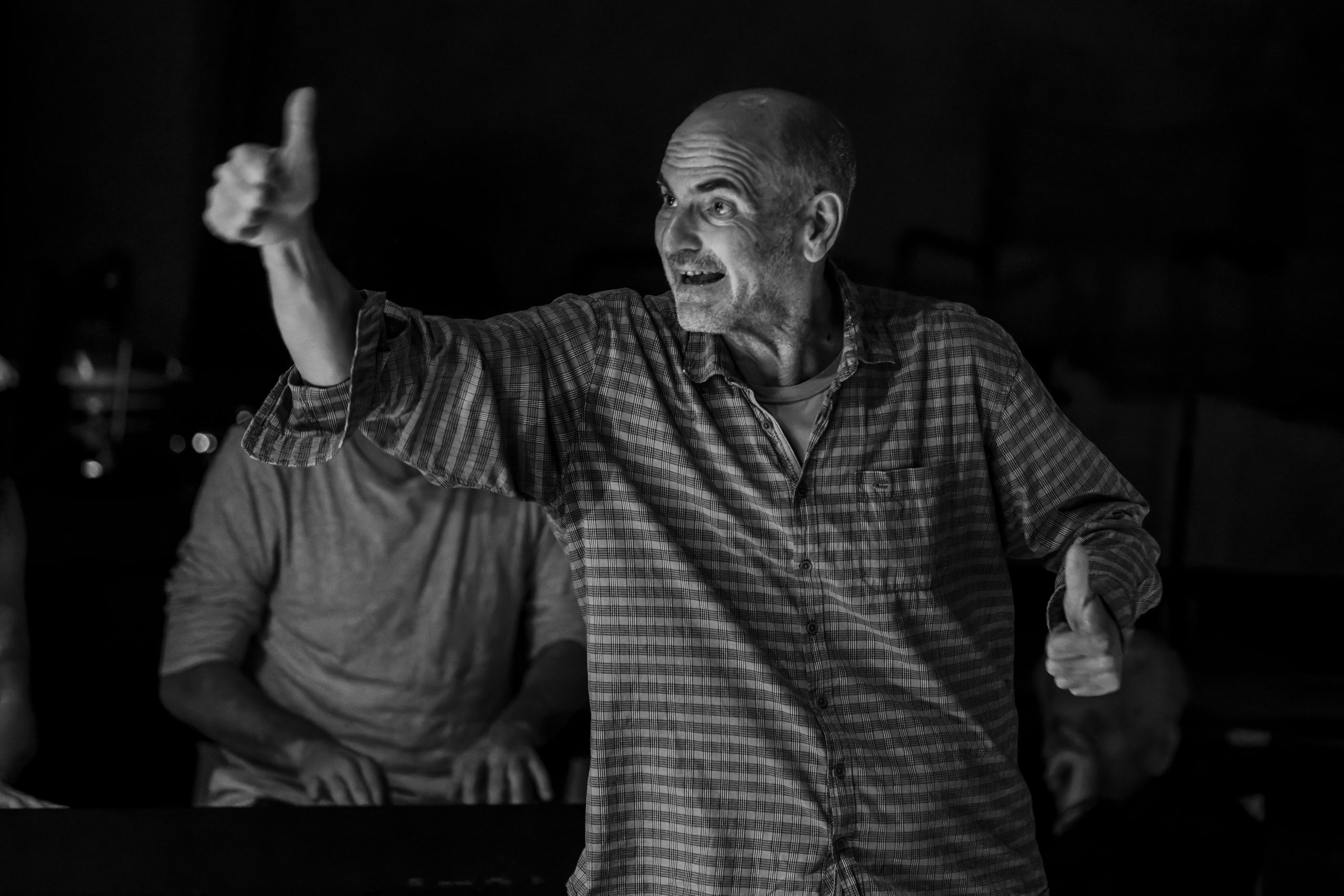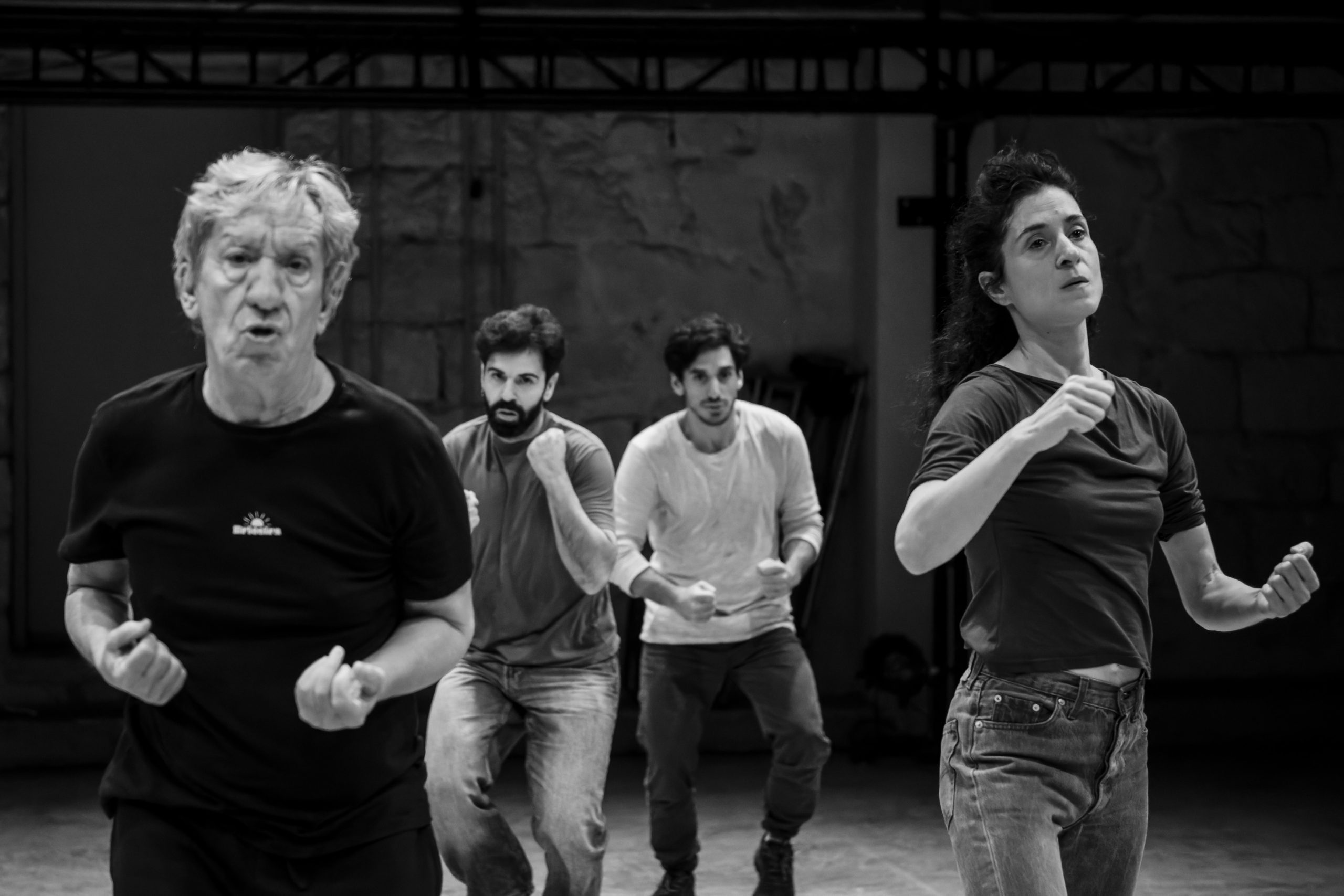 Η εικόνα αυτού του, φαινομενικά, οργανωμένου θεατρικού εργαστηρίου ανατρέπεται ανά πάσα στιγμή: από τους ηθοποιούς που βρίσκονται σε διαρκή κίνηση ή συνθέτουν χορικά σύνολα, από το «μαέστρο» Ακύλα Καραζήση που αθόρυβα δίνει οδηγίες σε καθέναν από αυτούς, από τη μουσική που κυρίως παίζουν η Νεφέλη Μαϊστράλη, η Θάλεια Σταματέλου και ο Τίτος Γρηγορόπουλος, από το κοινό που, σε σημεία, εκούσια ή ακούσια, συμμετέχει. «Είναι μια τρομερά αναζωογονητική διαδικασία, μας δίνεται η δυνατότητα να δοκιμάζουμε χωρίς να πρέπει να λογοδοτήσουμε αν δεν βρούμε το κέντρο μας από την πρώτη φορά. Είναι μια διαρκώς, εν δυνάμει, συνθήκη», ομολογεί ο Βασίλης Καραμπούλας, ο πλέον έμπειρος της ομάδας, που ενώ έχει περάσει μια ολόκληρη ζωή μέσα στο μοίρασμα της πρόβας, μόνο τώρα τη βιώνει κάτω από το βλέμμα του θεατή. «Μας δίνετε ένα πλούσιο πεδίο», προσθέτει η Θάλεια Σταματέλου «αφού δημιουργούμε θέατρο, απαλλαγμένοι από το φόβο του αποτελέσματος, με πολύ μεγαλύτερη ελευθερία, γεγονός που οδηγεί την ομάδα σε έναν πολύ πιο ουσιαστικό συντονισμό».