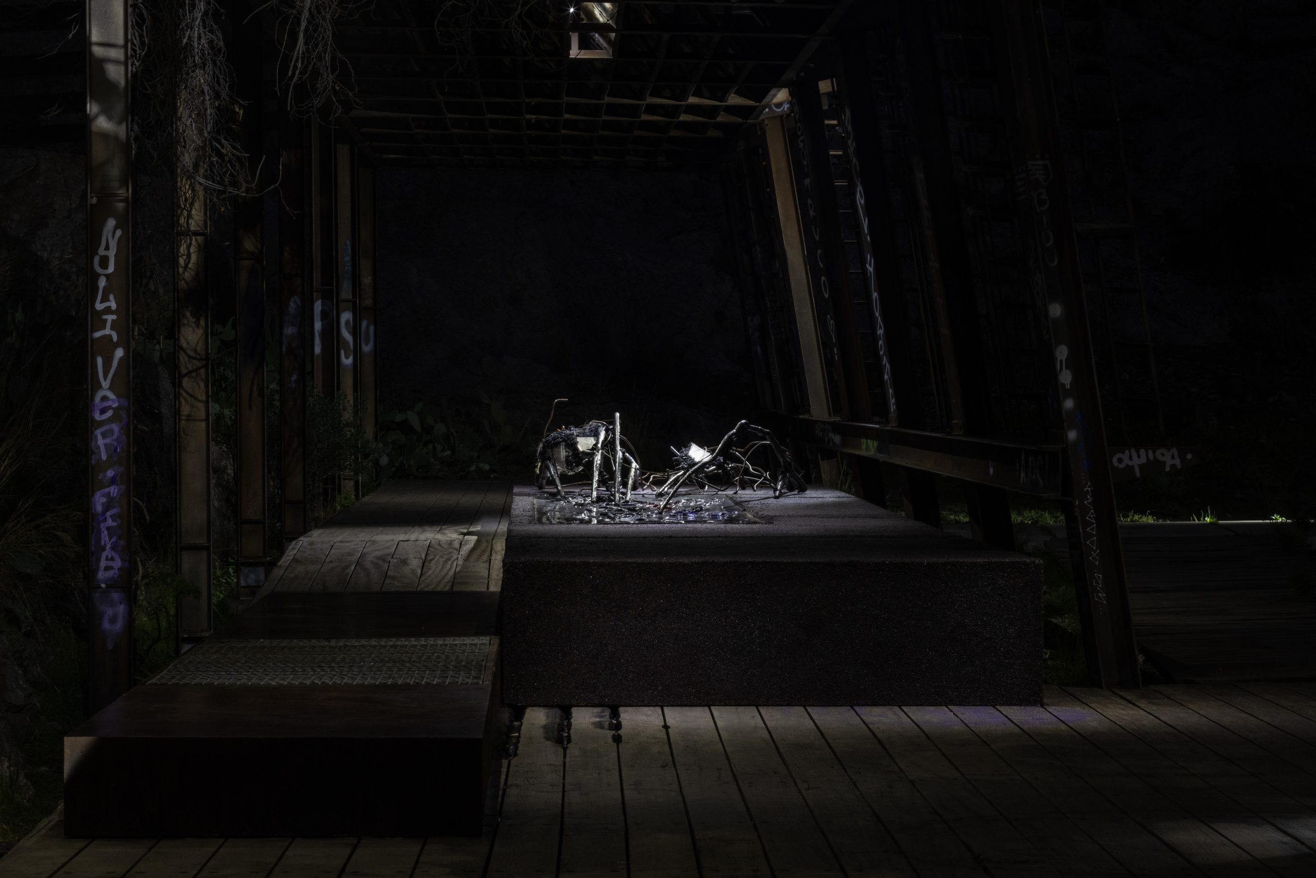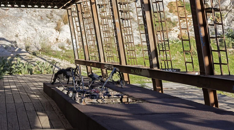 Σε ένα παλιό λατομείο στον Λόφο των Μουσών, ο Αλέξανδρος Τζάννης εγκαθιστά τις μεταβιομηχανικές κατασκευές του σε άμεσο διάλογο με τον χώρο και τις χρήσεις του, στο πλαίσιο του προγράμματος «Έργο στην πόλη», που πραγματοποιεί ο πολιτιστικός οργανισμός που ίδρυσε ο Δημήτρης Δασκαλόπουλος.
